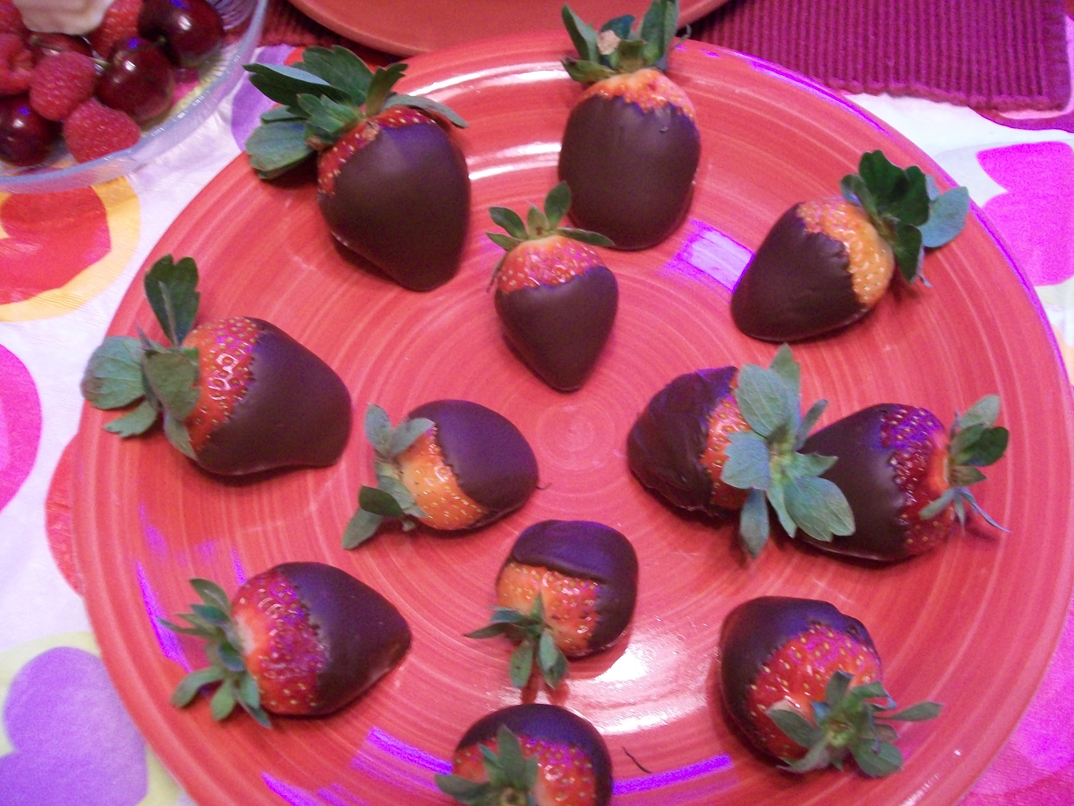 I worked my butt off to make a memorable Valentines Breakfast for my family.  I dipped big, juicy, luscious red strawberries in chocolate.