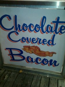 Once he brought me some chocolate covered bacon.  I will tell you, dear friends, that though I sincerely appreciated his offering, I never, never, never want to taste that nastiness again.  Ever.