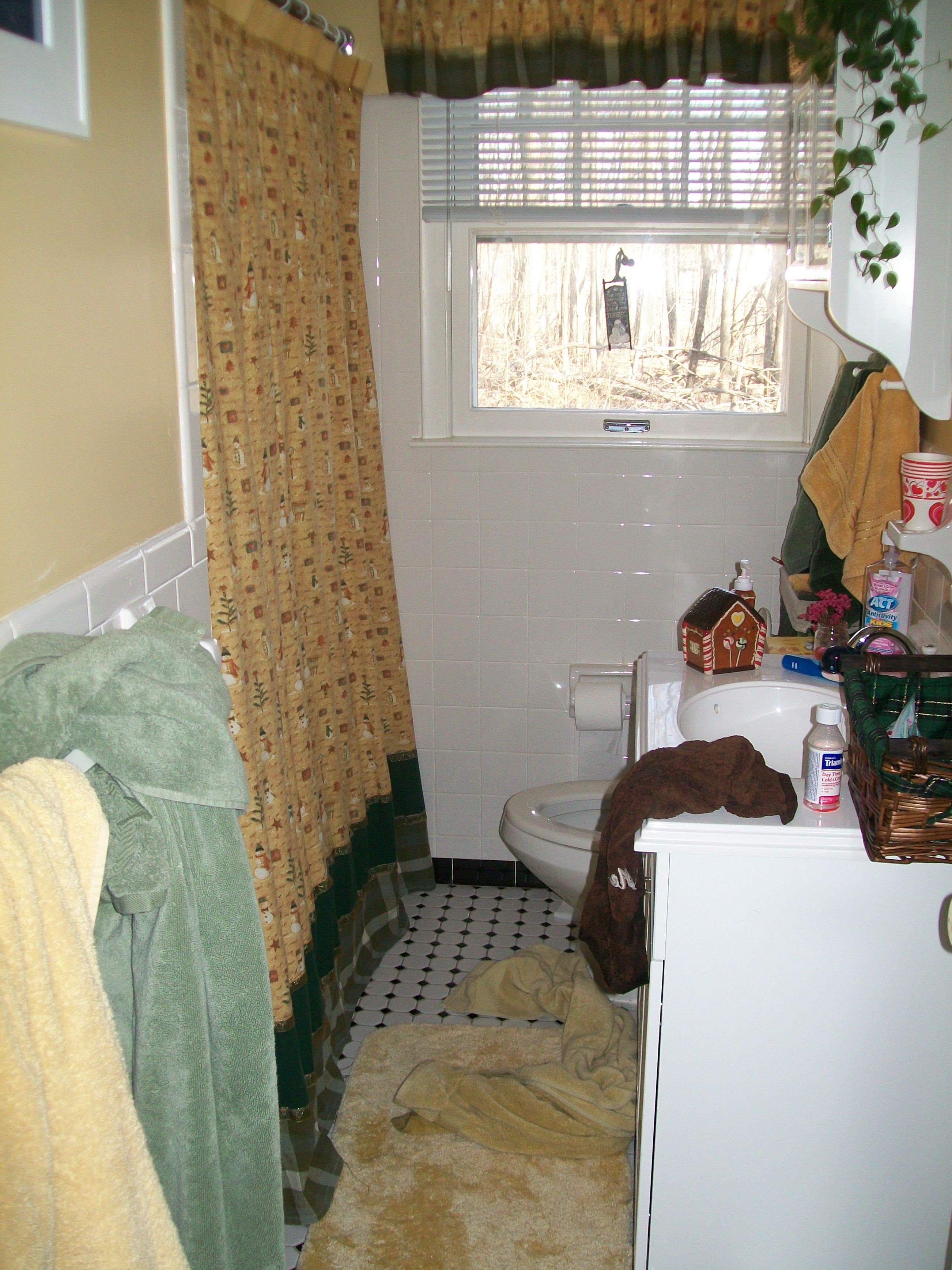 I made the shower curtain. (I make a different one for each season. I mean, when you are sitting on the potty and the shower curtain is so close you could wipe your nose on it, it might as well be interesting to look at. Heck, if I could find a material with Soduko games on it, I’d make one out of that.)