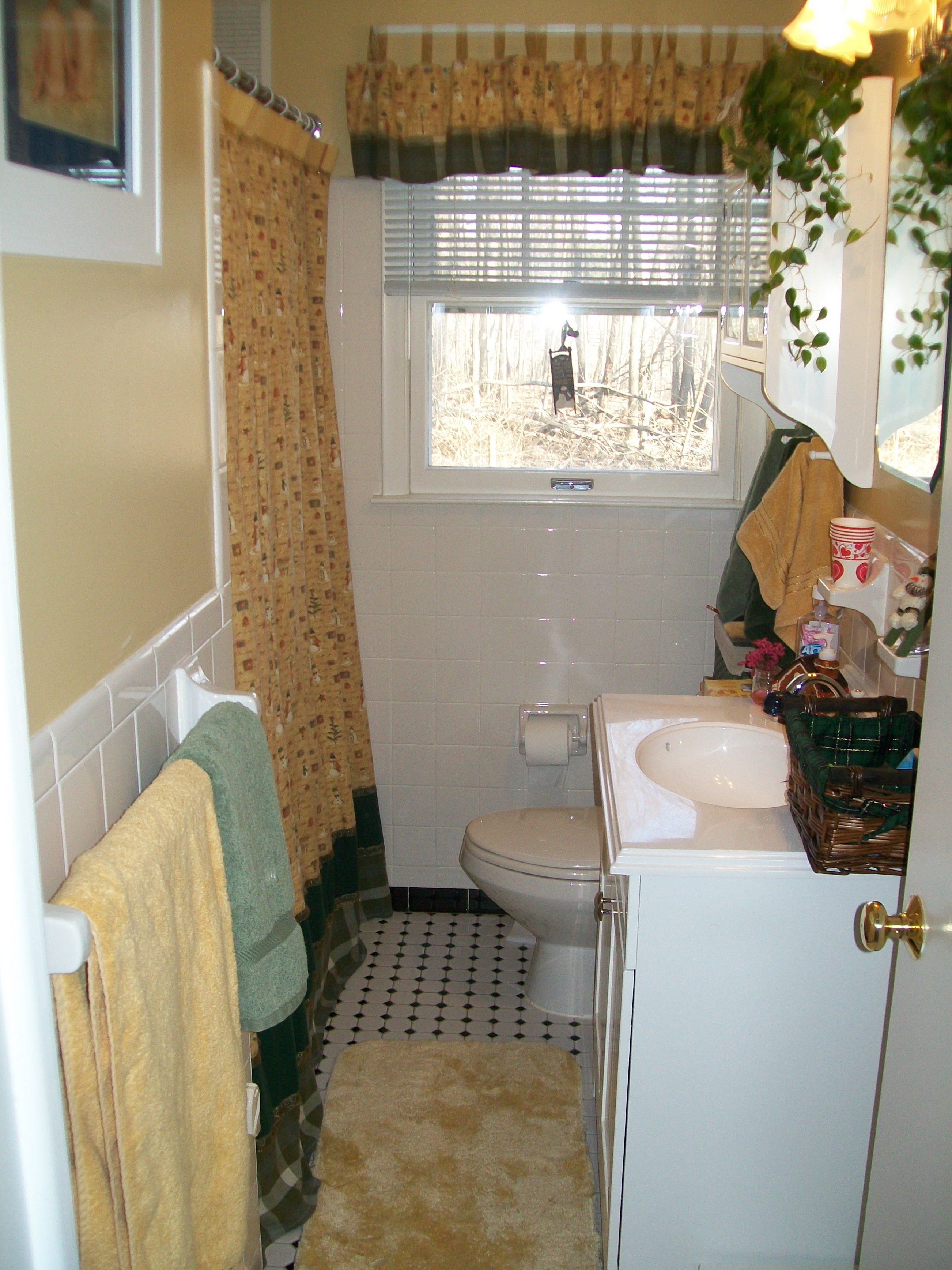 I may have mentioned a time or two that our cottage is very sweet (read: small). Our downstairs bathroom is cozy (read: cramped) and efficient (read: you could brush your teeth while you were sitting on the toilet).