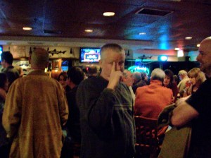 So it was just the three of us walking into a PACKED house.  The wait was over 40 minutes for a table, so we took our little magic-dinner-homing-device from the hostess and sauntered over to the irish-like pub.  Well, ‘sauntered’ probably isn’t a good description, it’s more like we elbowed and shouldered our way in.  People were packed tighter than sardines in a can, man.