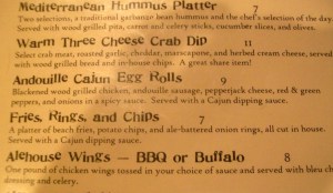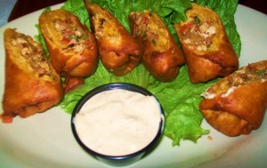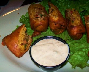 See that bit about the Andouille Cajun Egg Roll?  THAT, my friends, is the nectar of the Gods.  I’m not kidding.  I. am. not. kidding.  Crunchy goodness on the outside, with spicy pork and peppers and all kinds of naughty bits on the juicy inside.  OH MY GOODNESS.