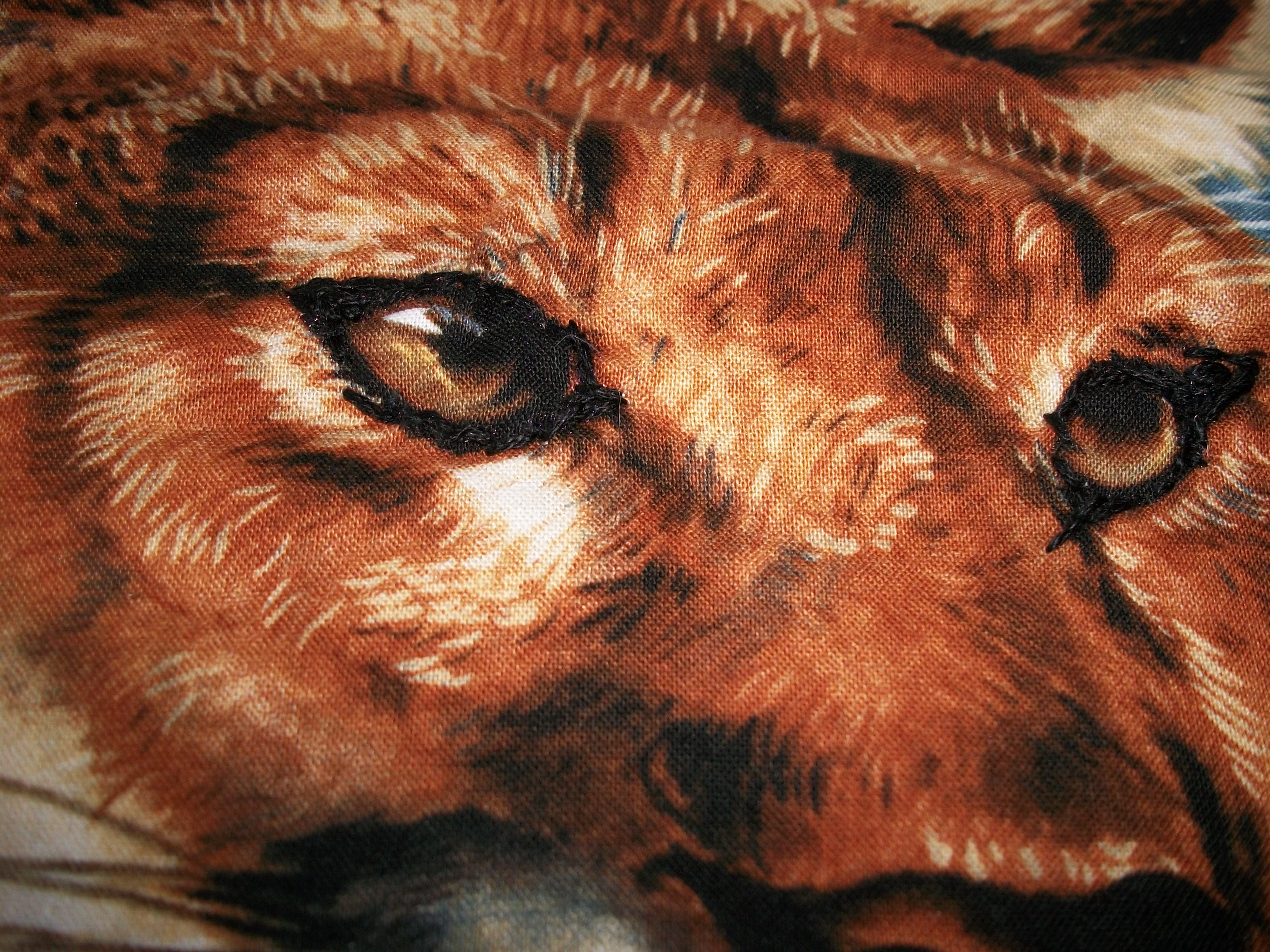 and Mountain Lions…sleek, fast, strong, sly.  She embroidered these eyes as well.  I wish it would translate better in the picture; it’s really cool to see and touch.