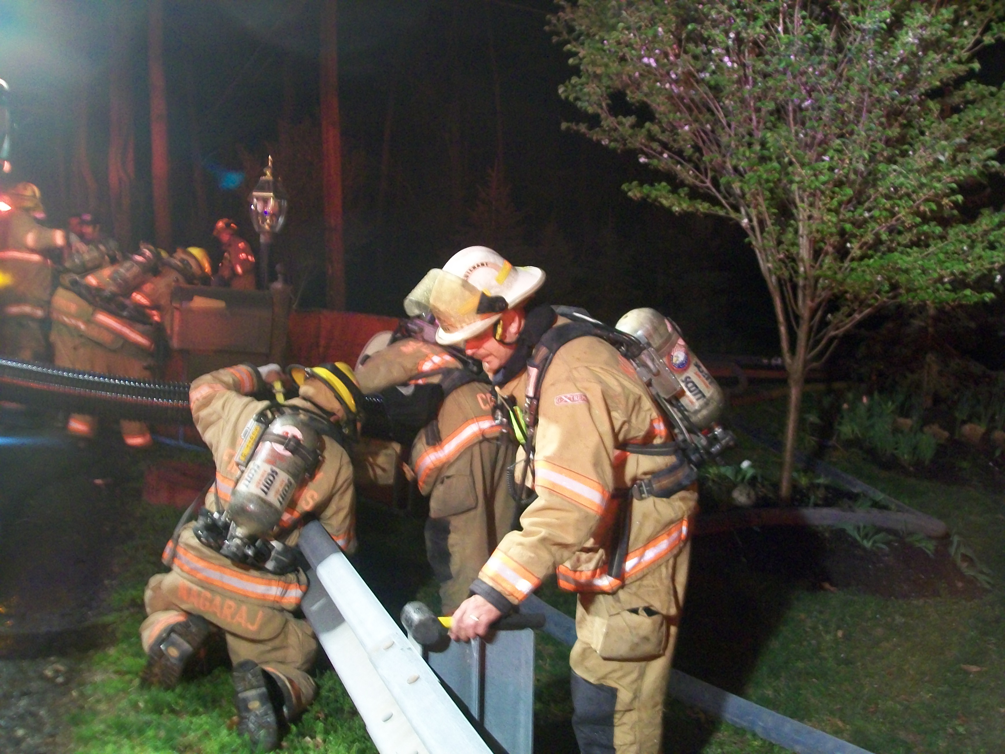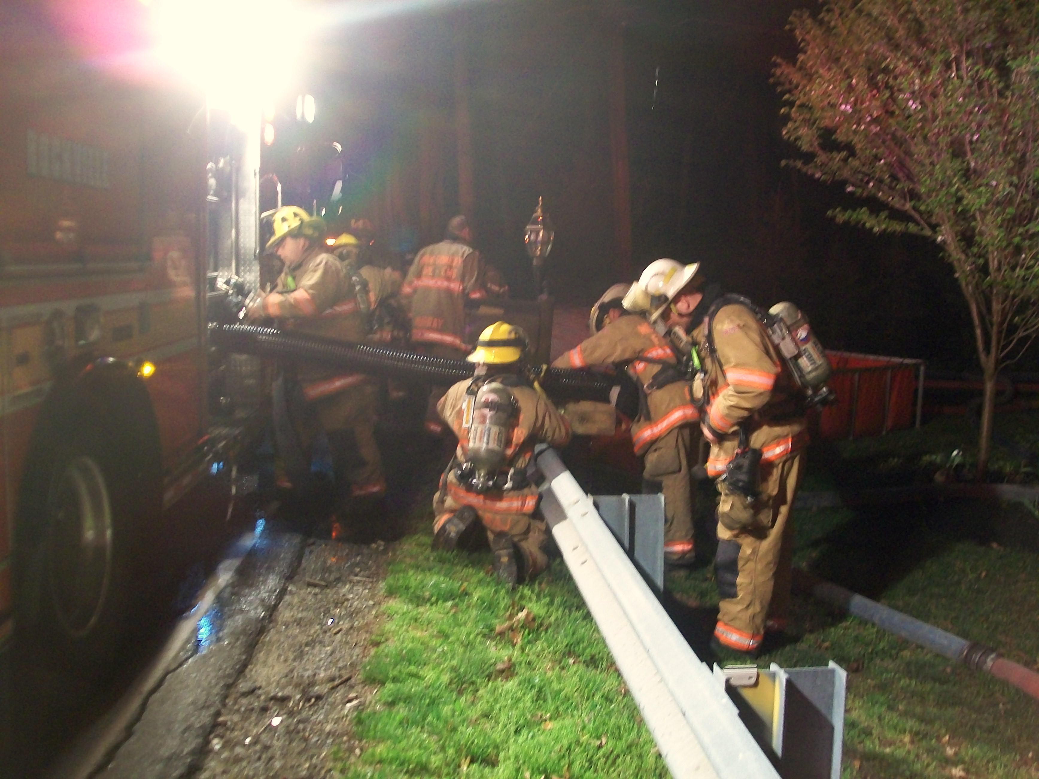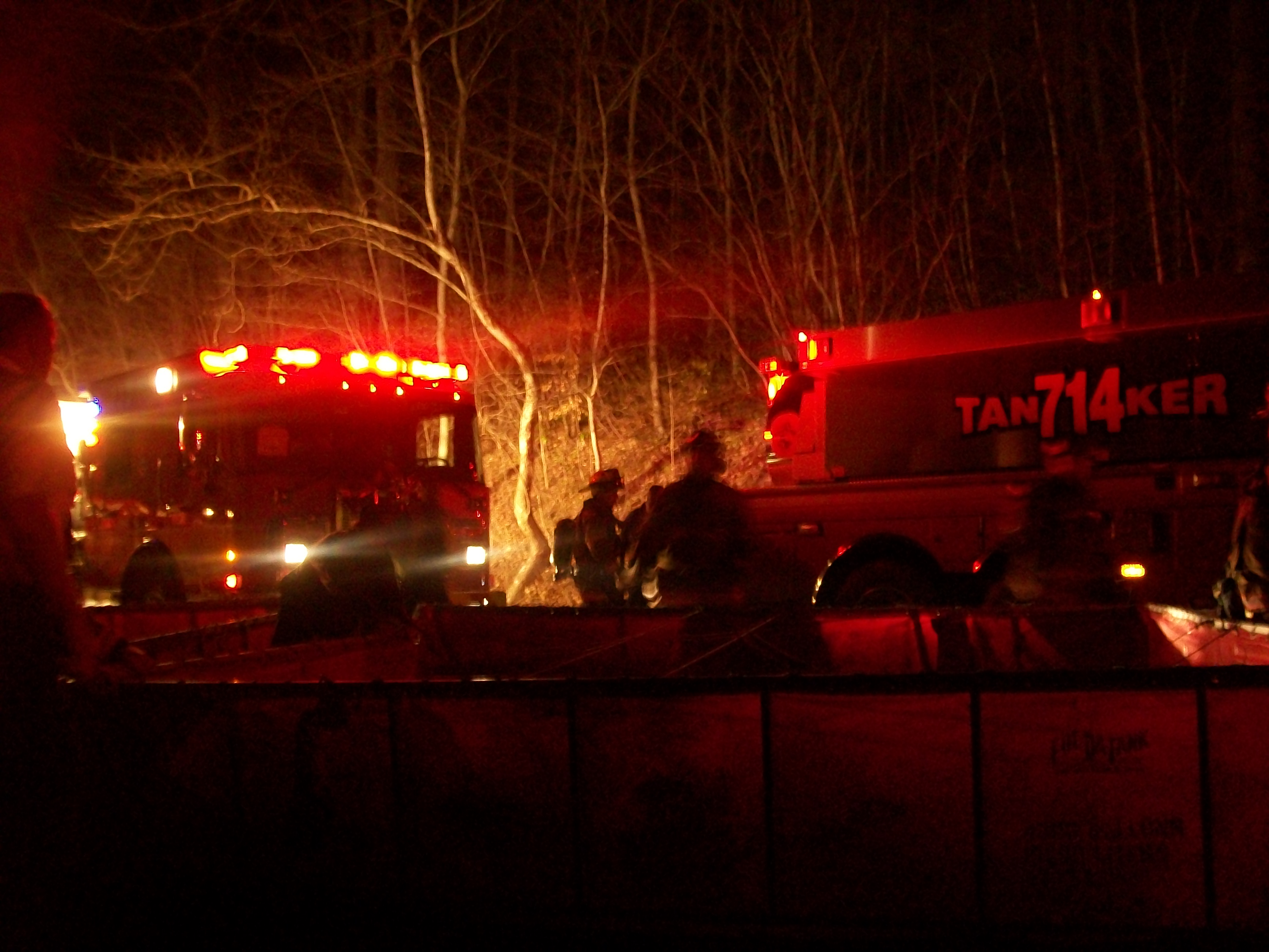 Nope. Here is where a different firehouse is establishing and maintaining a water supply. Joe, from my Captain’s shift, was on the first due Tanker and had already supplied the first round of water. It’s up to the next arriving fire crews to bring more. The nearest hydrant was a mile away. It took some work to get that water!