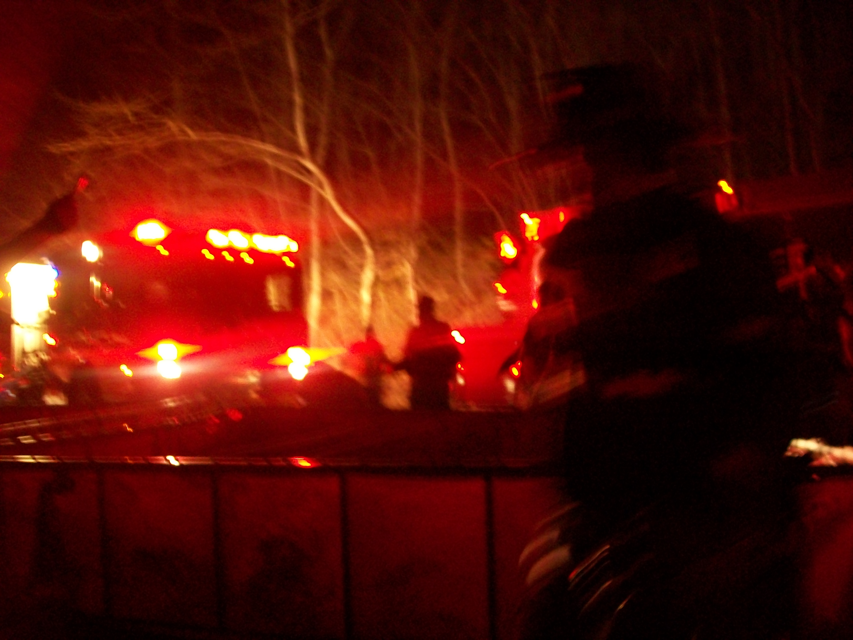 There in the distance, through the darkness of the trees, I saw more firetrucks up a steep steep steep steep hill.