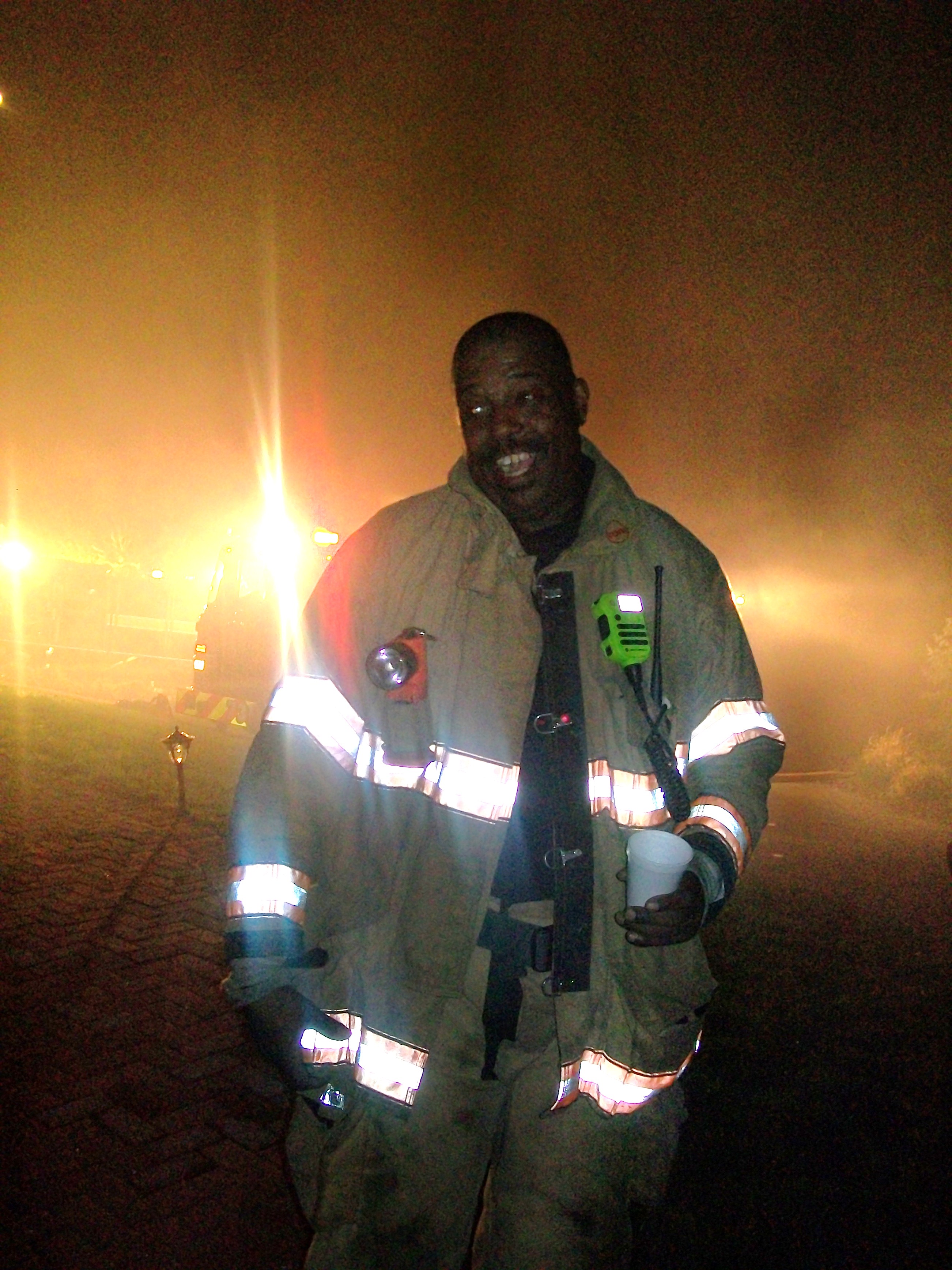 When the other companies got there, they took different positions and at the point of this picture, they were in the mode to put it out. That’s Ronald in the back ground, to the left of My Captain. We love Ronald. They’ve known eachother since they were schoolboys. There is a lot of family here.