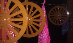 I knew we were in for a treat when the normally staid brick entrance to the church was decorated with plastic wagon wheels and colorful bandanas: