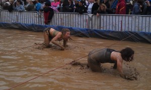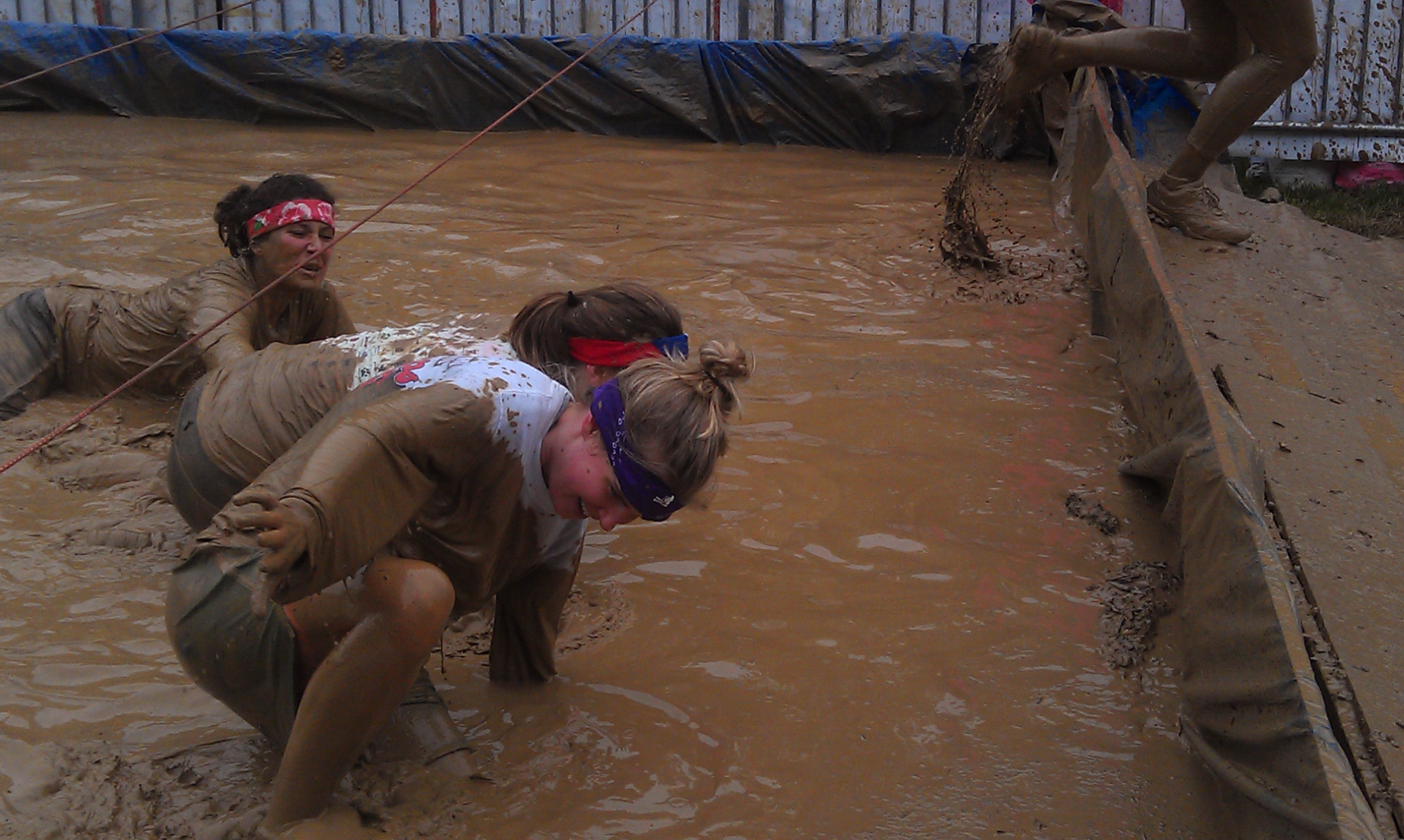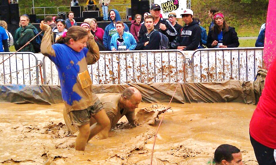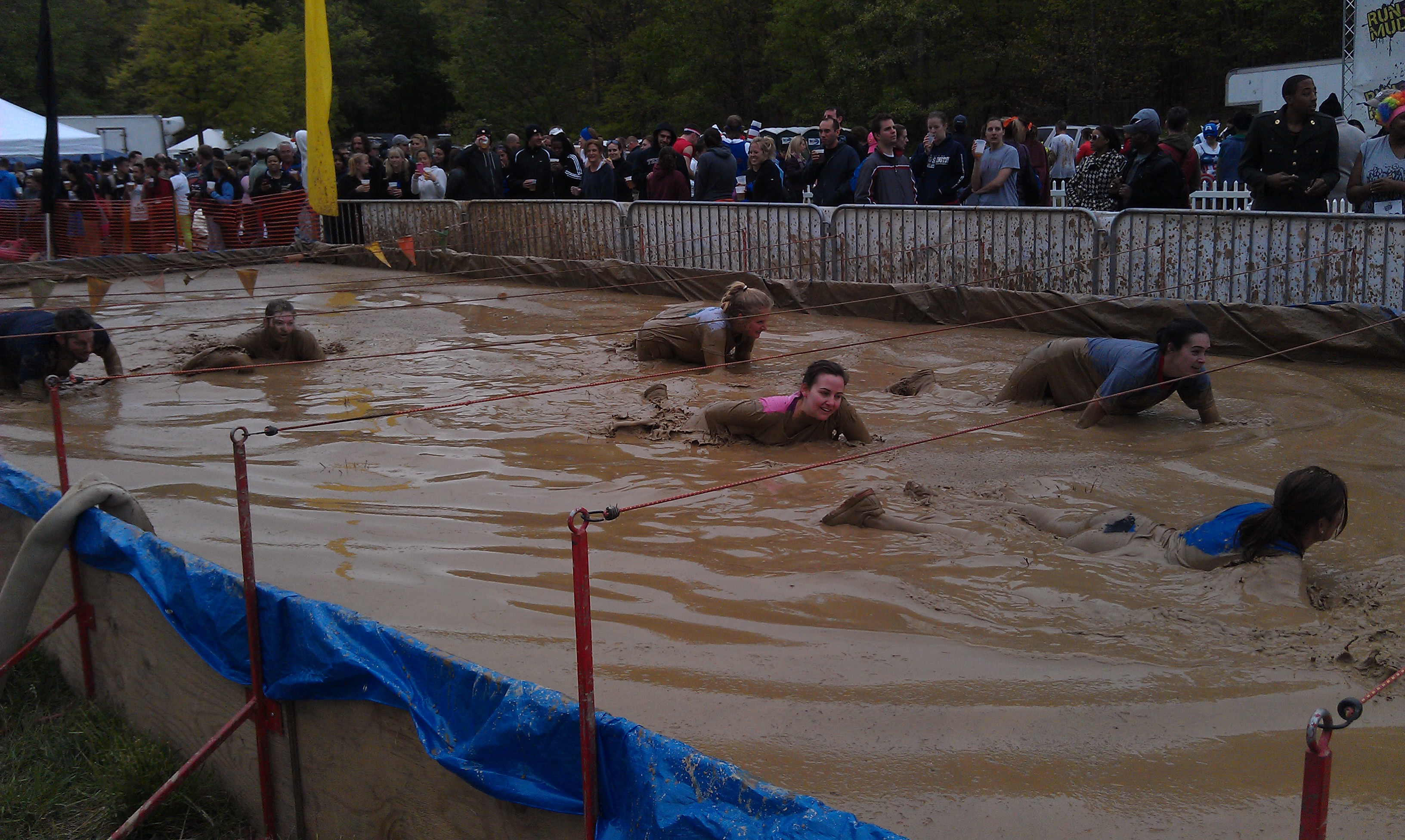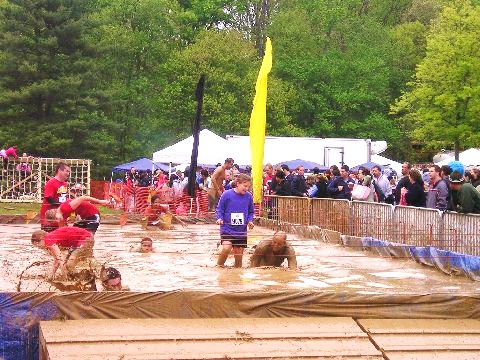 The end of the course was a rope climb and a final mud pit. I really enjoyed watching the wild abandon it unleashed in people: