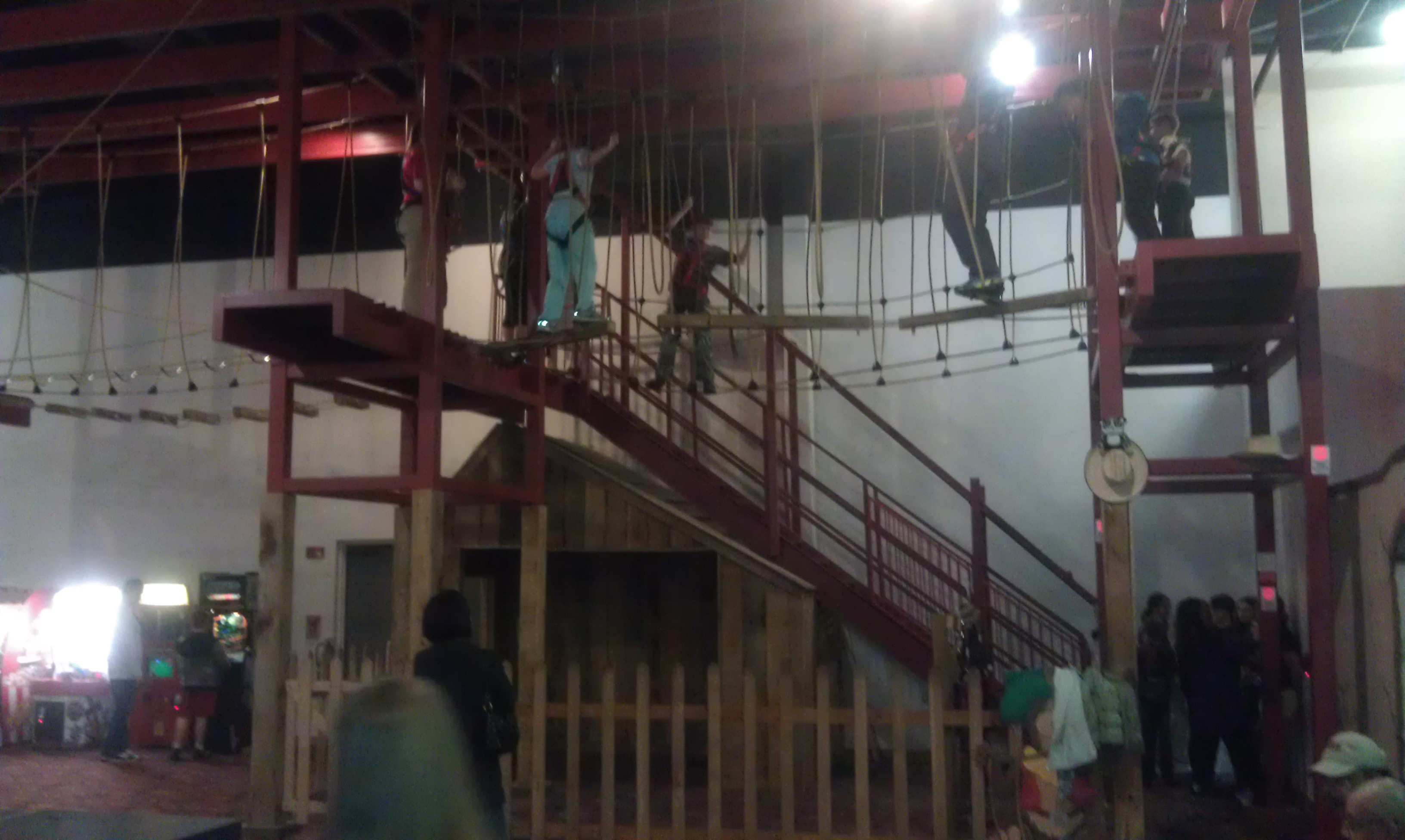 A couple of weekends ago, it was raining.   I felt bad for my munchkins, who really wanted to go out and about. So I dragged the whole fam damily out to the Adventure Park Arcade and Indoor Rope Course to expend some energy.  I thought it would be fun! I thought it would be adventerous!  I thought it would be great exercise!