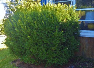 The Kingpin Yew. The scourge of the yard. Other aliases: “Knee Scraper,” “Bunny House,” “That Damned Bush.”