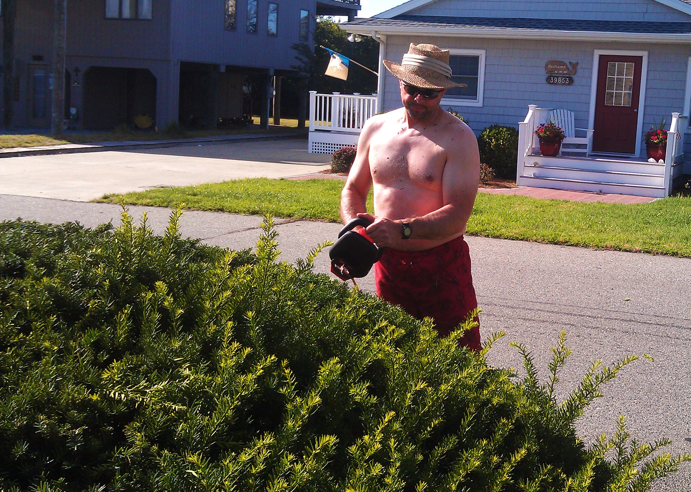 The first assault came from My Captain, armed with nothing but my wimpy electric girly-girl hedge trimmer, SPF 50 sunblock, and his natural good looks.