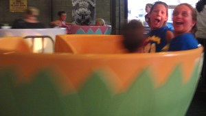 Mind you, we don’t do it because the kids want to. We do it because Mama is stuck in her childhood and is in denial that time is passing. So I make the kids ride the same kiddie rides every year.