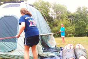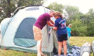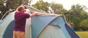 It went like this: My Captain, Varmint and Critter, did the work, and I took pictures and read the tent’s set-up instructions from the comfort of my Zero-Gravity Camp chair.