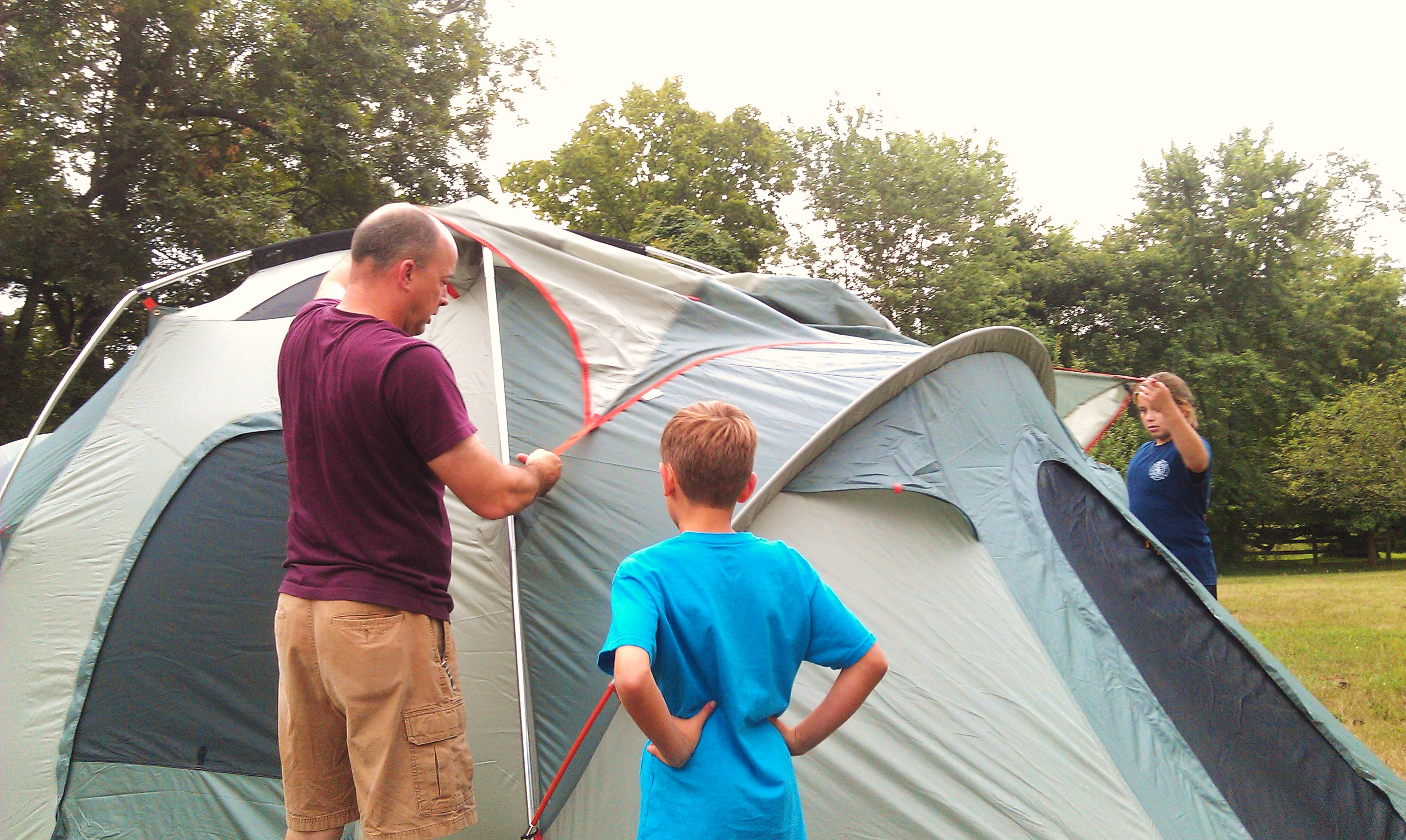 We decided to break in our brand-new, extra-spiffy, huger-than-huge tent last night.