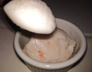 I have to confess something else now, too.  I’ve bullied Chef Smallwood into considering competing in The Food Network’s show “Chopped.”  He hemmed and hawed.  But I think he would be fantastic.  Any man who puts ginger in White Peach Ice Cream on a whim could hold his own on “Chopped”.