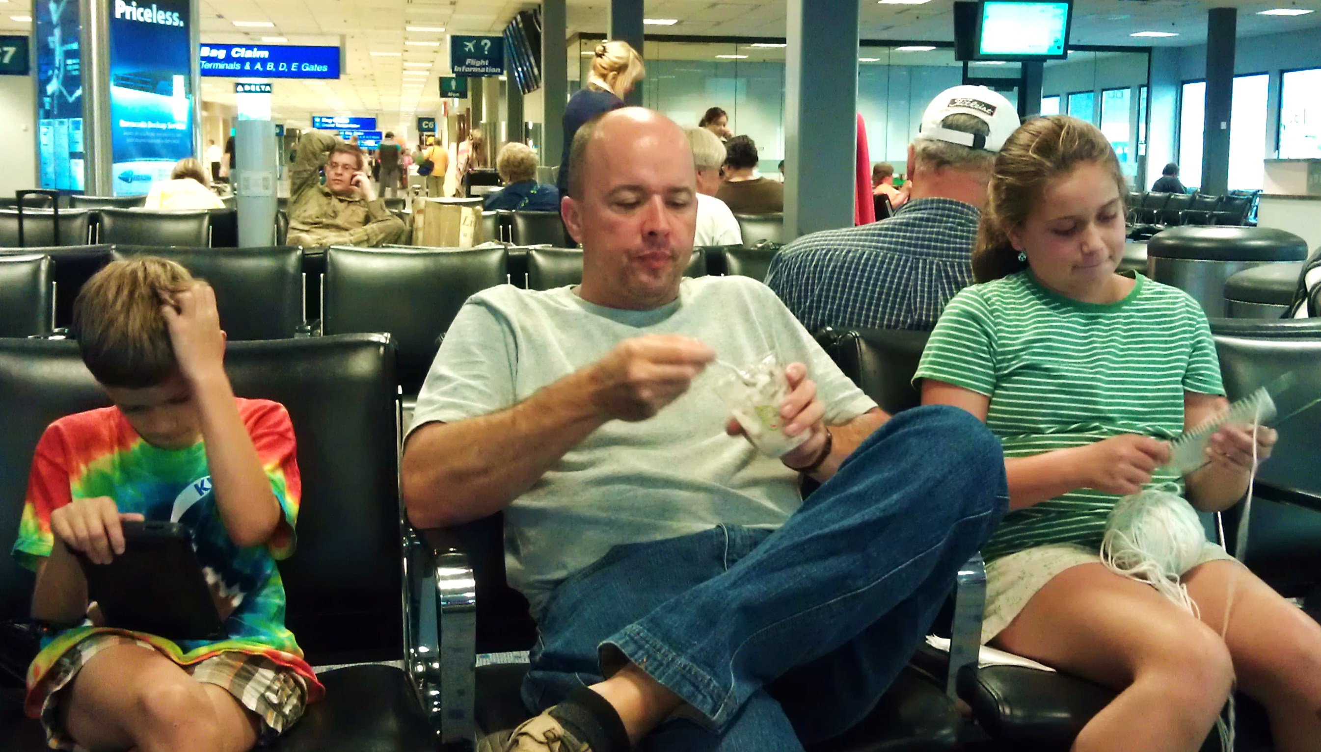 I was so excited to embark on our family camping vacation to Montana a couple of weeks ago.  Eagerly anticipating quality family time, free from the distractions of day-to-day modern life, I plunked myself down on a seat at the airline gate to await our flight.  I chose a chair across from my beloveds, and prepared to engage them in meaningful conversation that I just knew would spark growth and curiosity, and deepen our affections for one another.