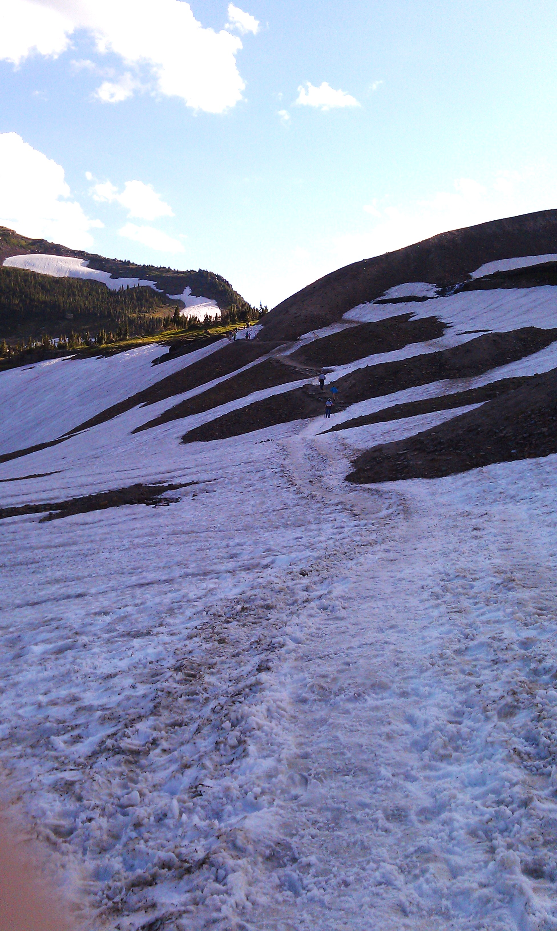 Bright green alpine grass and wildflowers of every hue, snow so white it was blue, and….wait…