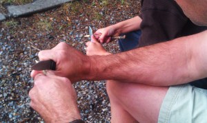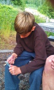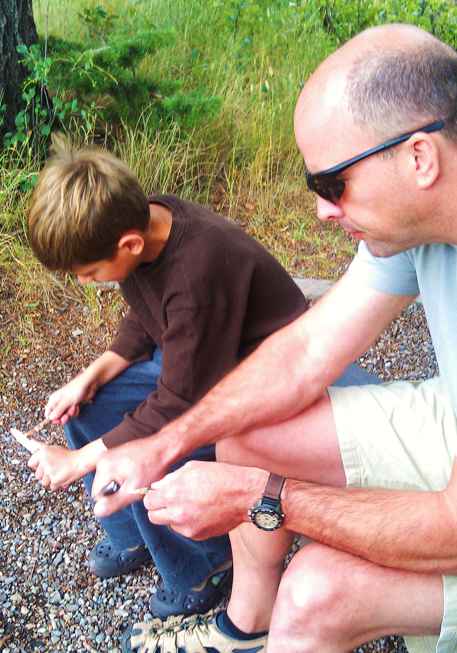 So we relented. He now owns several Montana-made pocket knives. And the lessons began on the trip.