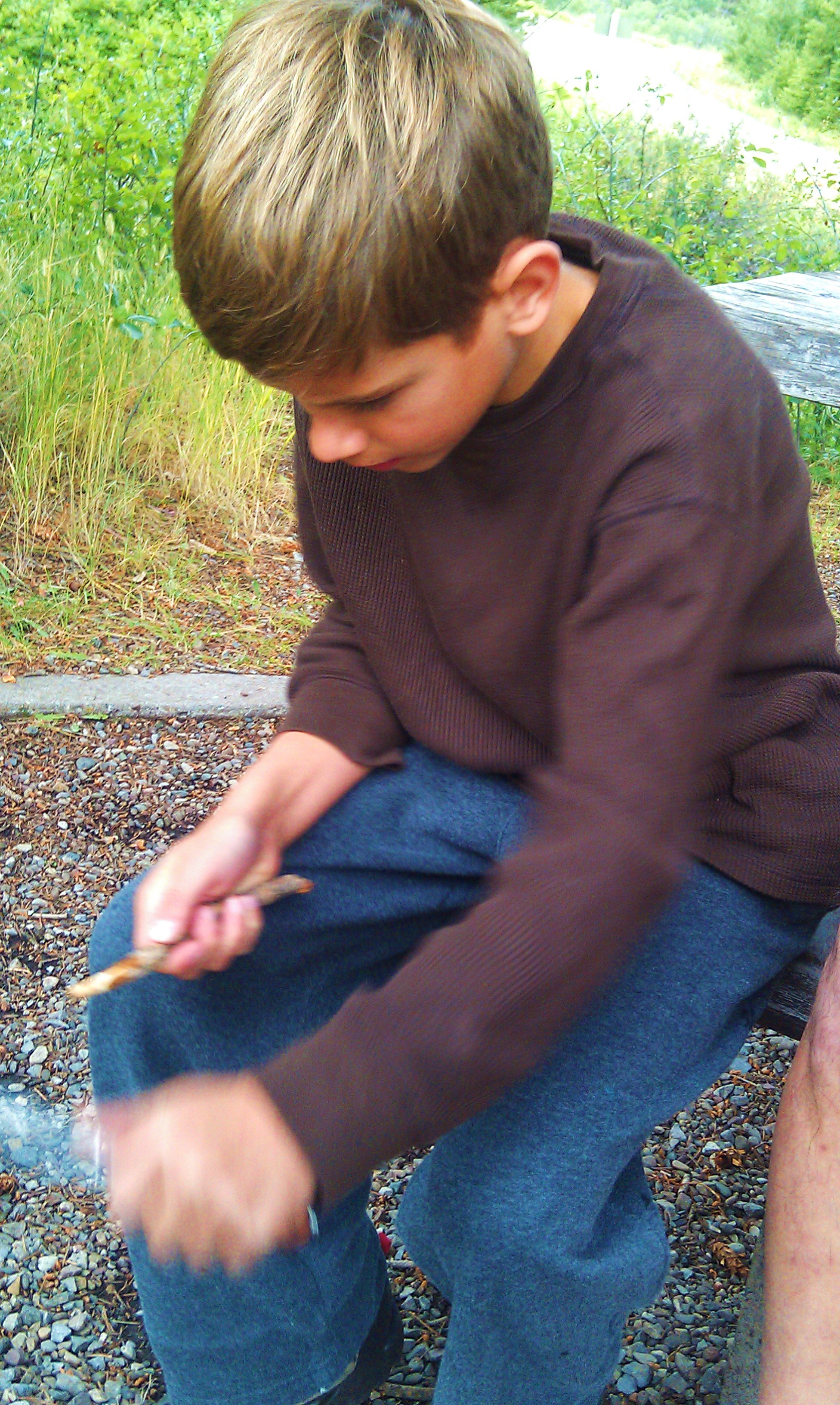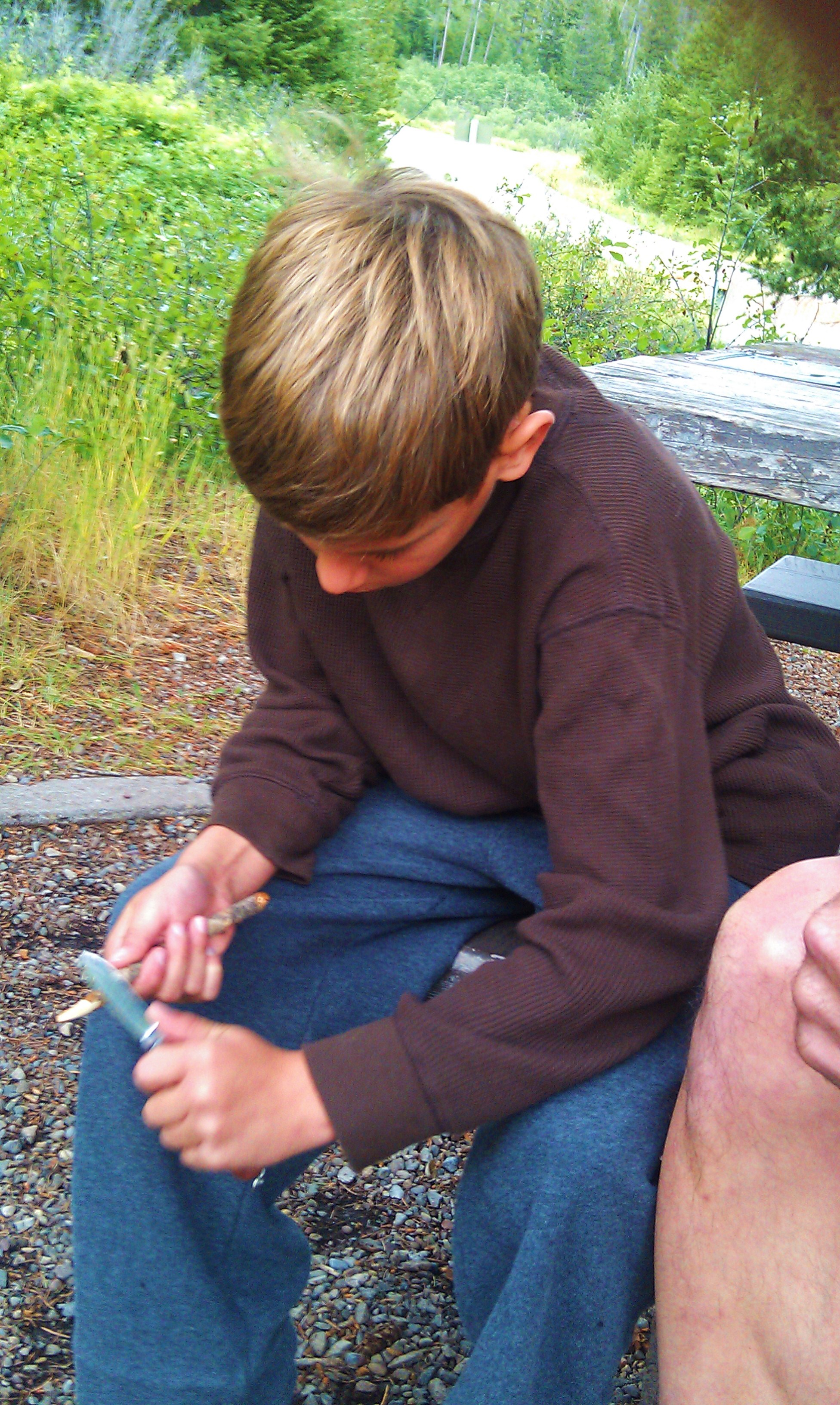 Critter begged for the duration of our trip in Montana for a pocket knife. He wanted to learn to Whittle.