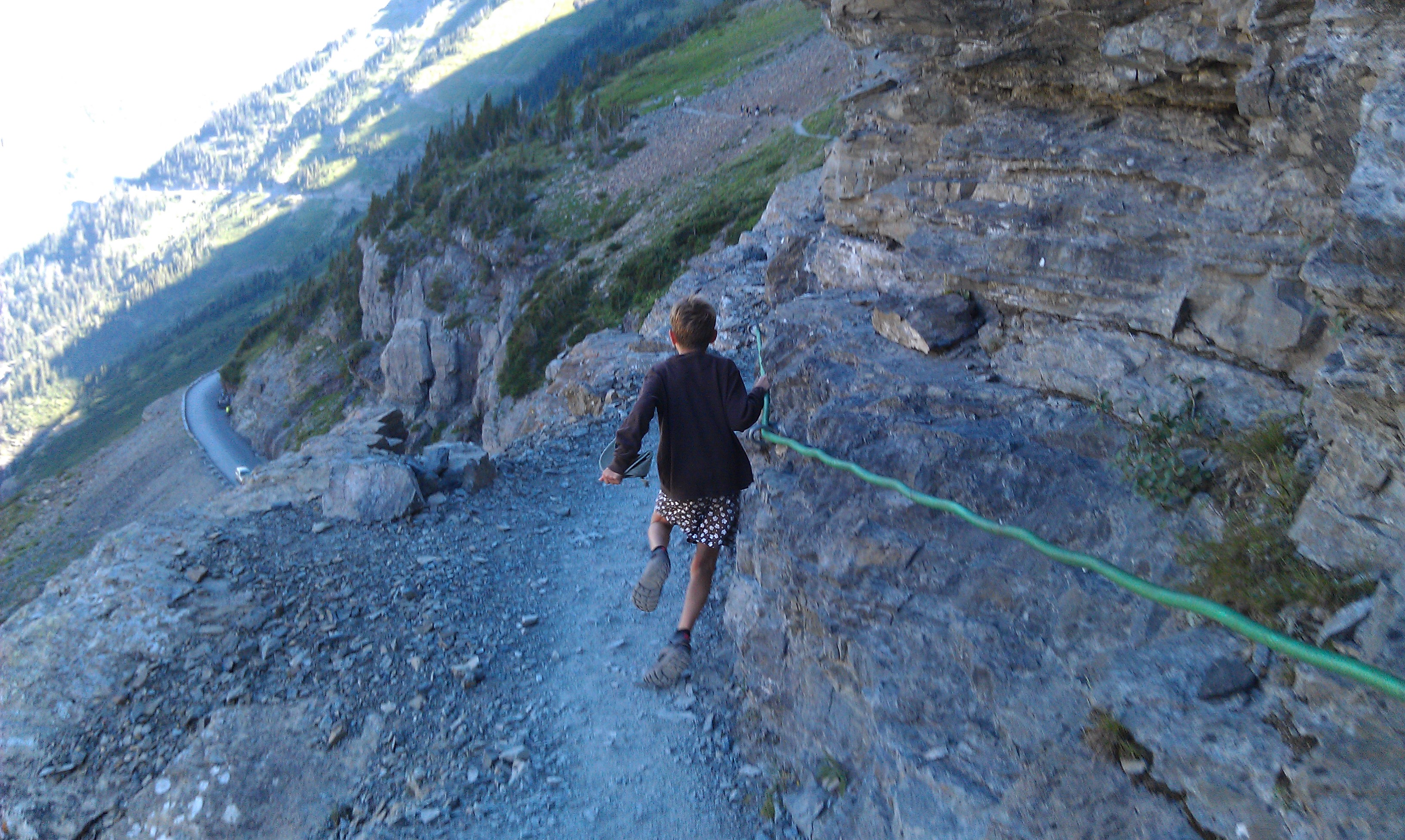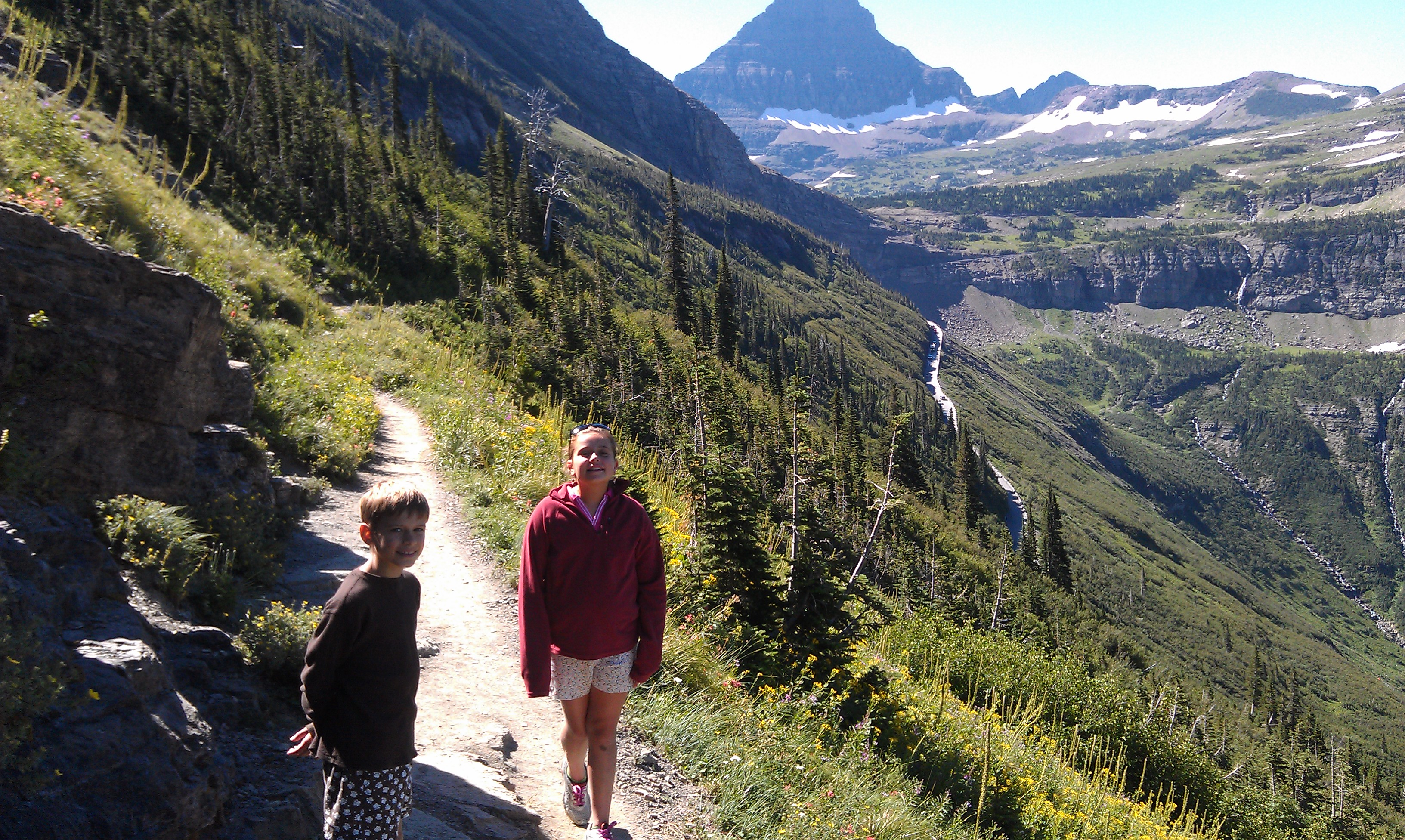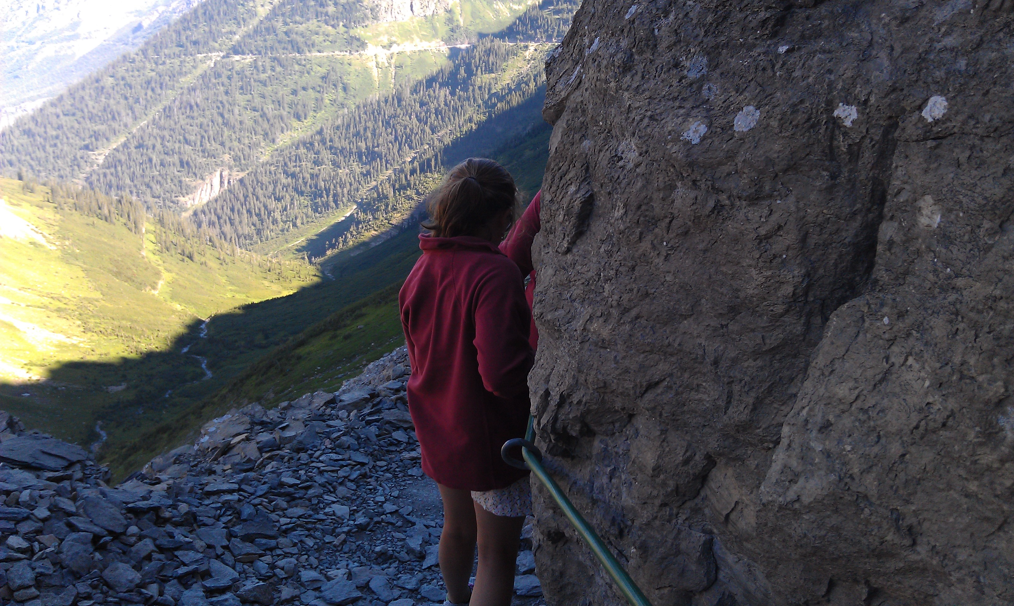 The last hike we attempted while at Glacier National Park this summer with Critter and Varmint was our particularly favorite hike. My Captain and I fall in love again every time we hike that trail. Aptly named “The Highline Trail”, it is one of the highest trails in Glacier Park, with its trail head at the Continental Divide, and much of it on a cliff no wider than a sidewalk.