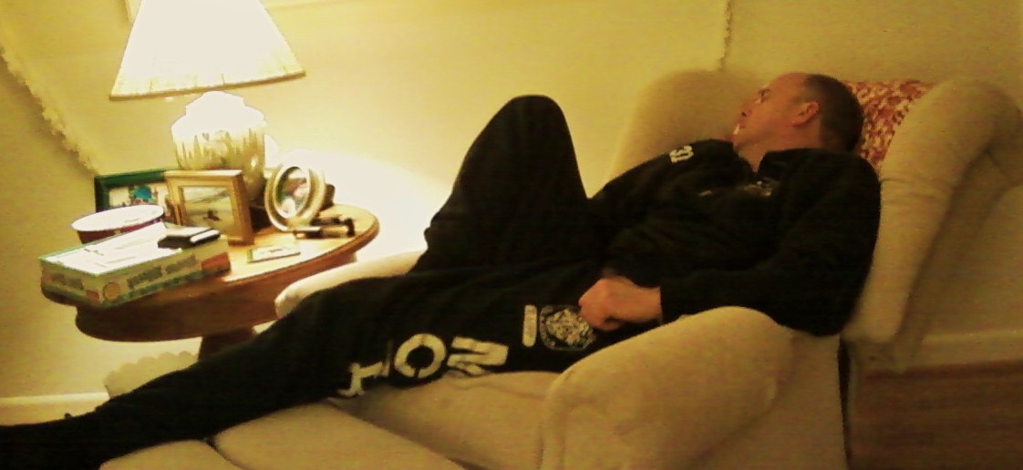 So when my beat-up beloved came home, it was all he could do to greet our munchkins before he promptly flopped into the recliner. He didn’t even take a minute to change out of his uniform. (ew.)