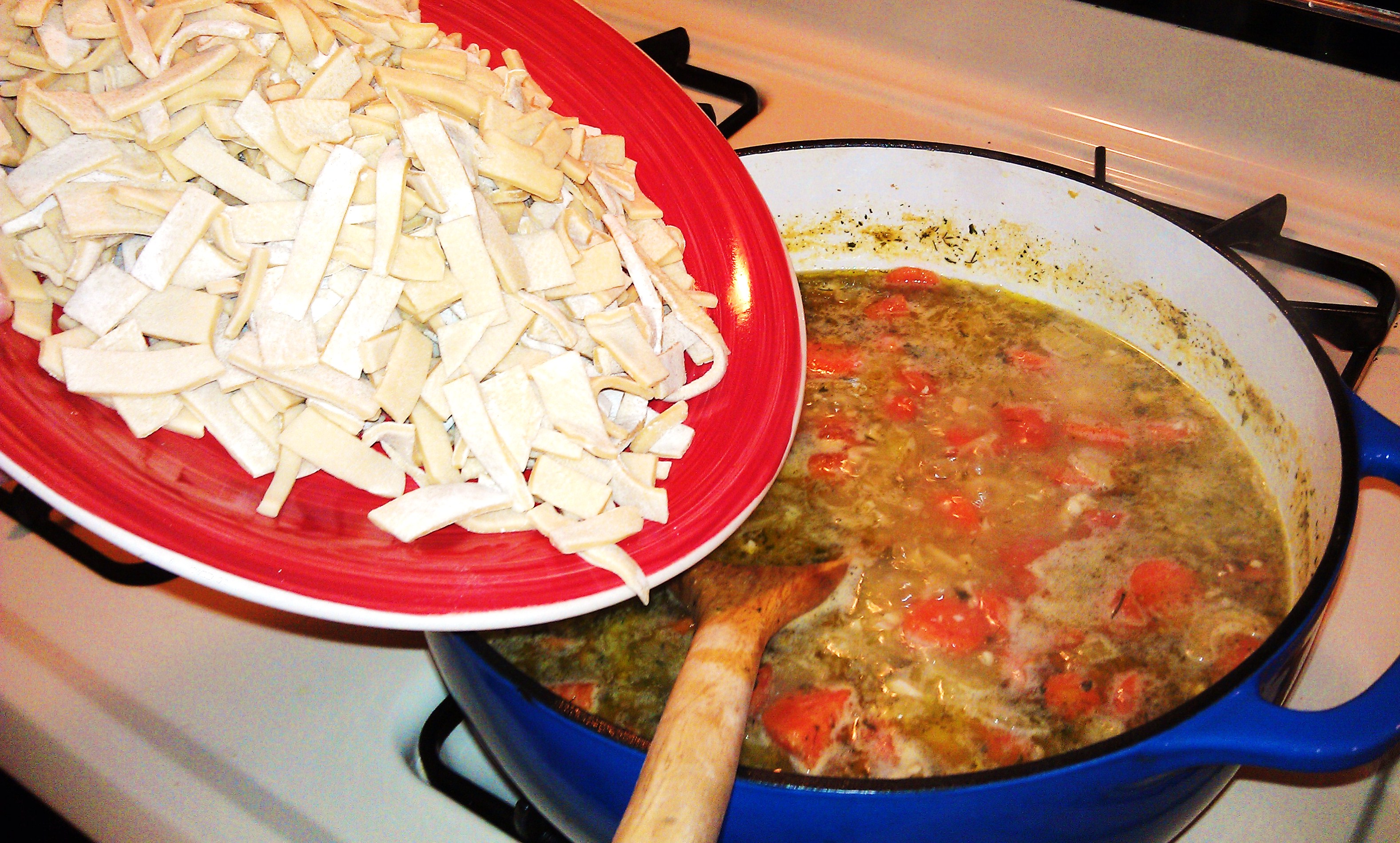 I made Chicken and noodles…and the turbo part? I made the Noodles from scratch, baby! Nothing says love like homemade noodles!