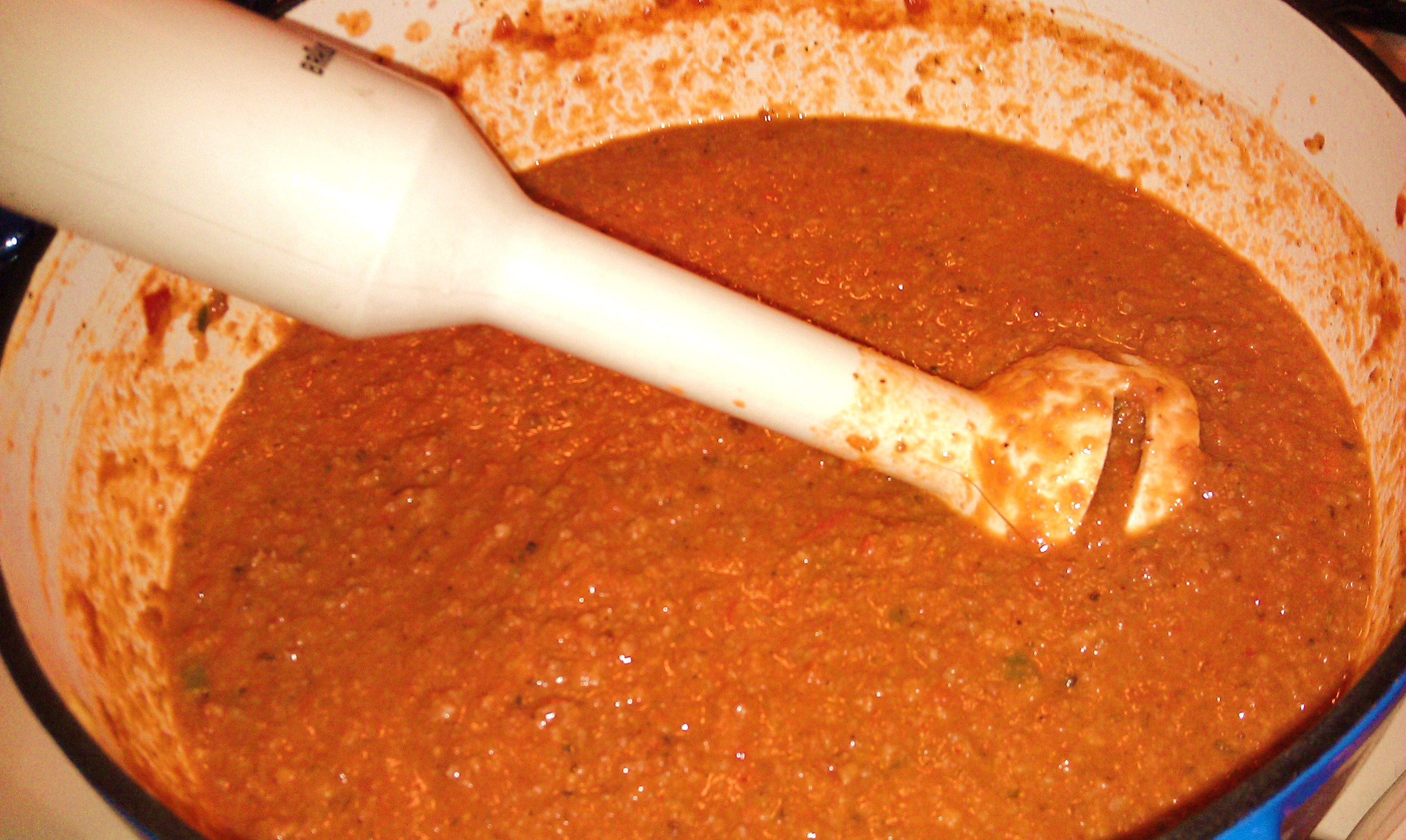 Then, because I don’t like to make my eaters work so hard, I pull out my old, cracked palm blender….