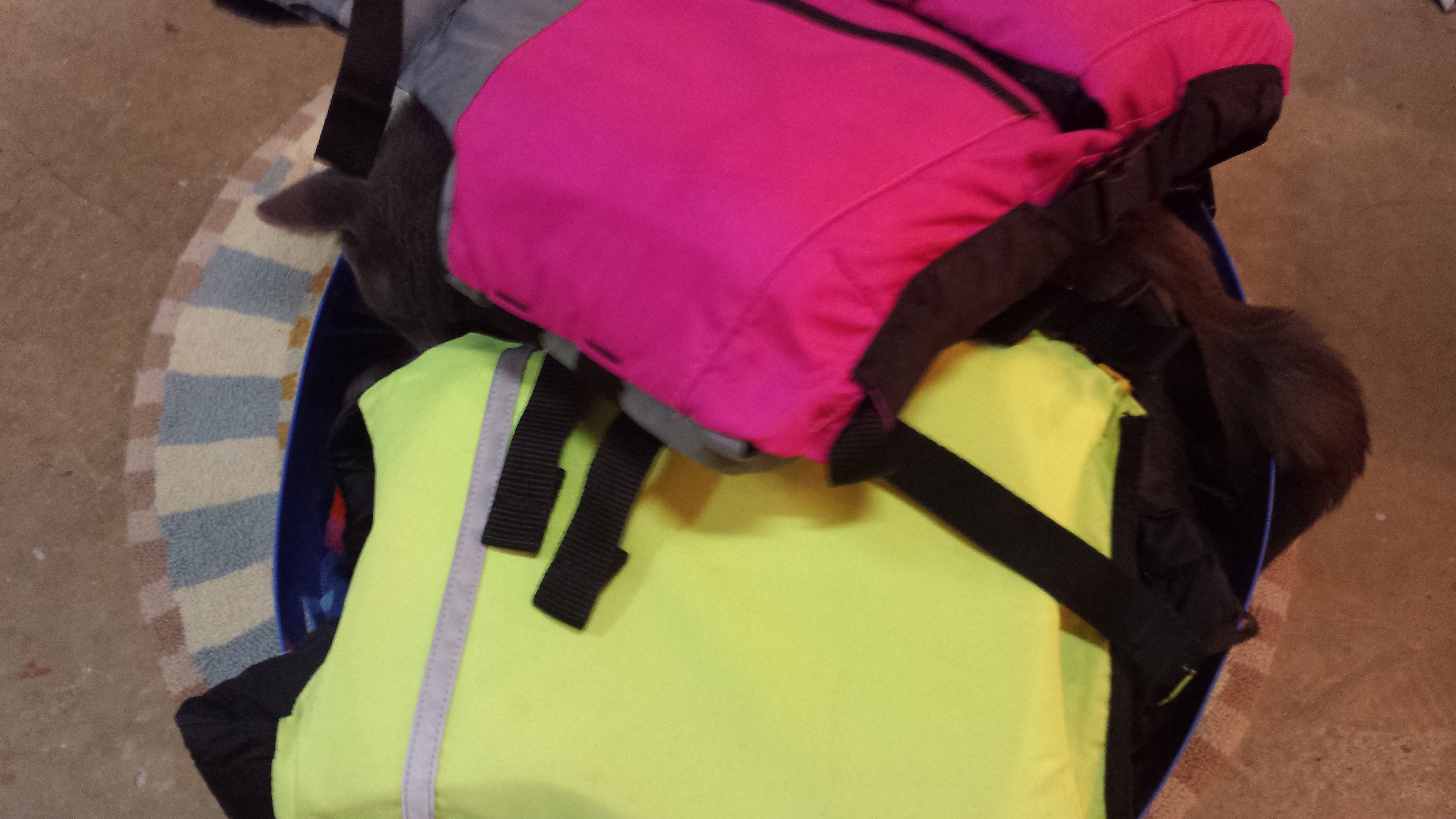 Buried deep beneath the life jackets we wore sailing with Cupcake, is the fat furball. This cat very nearly ended up in the car en route to Annapolis. He nearly ended up in a sailboat. He would NOT have enjoyed that; though the rest of us might have gotten a snicker or two out of it.