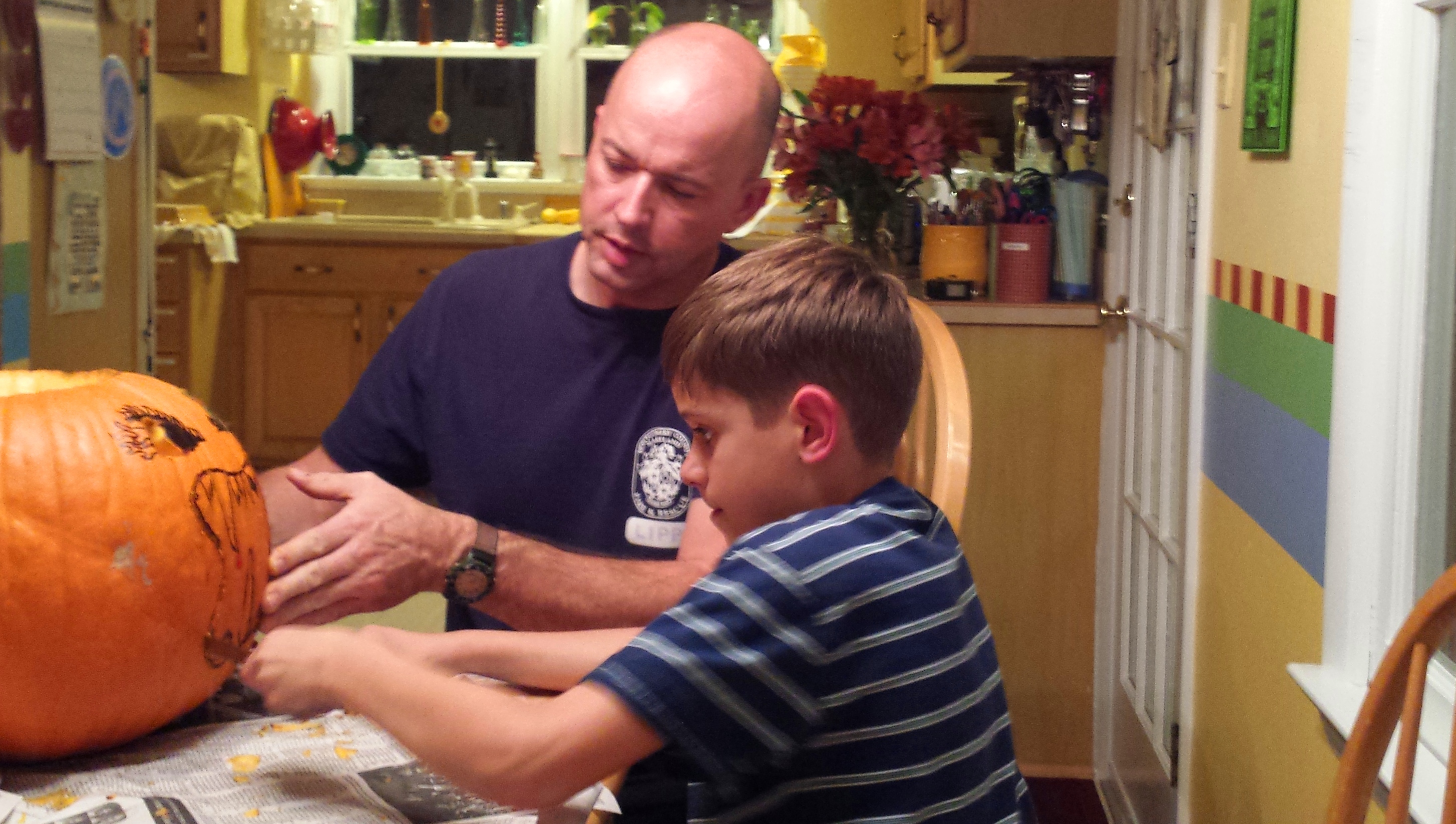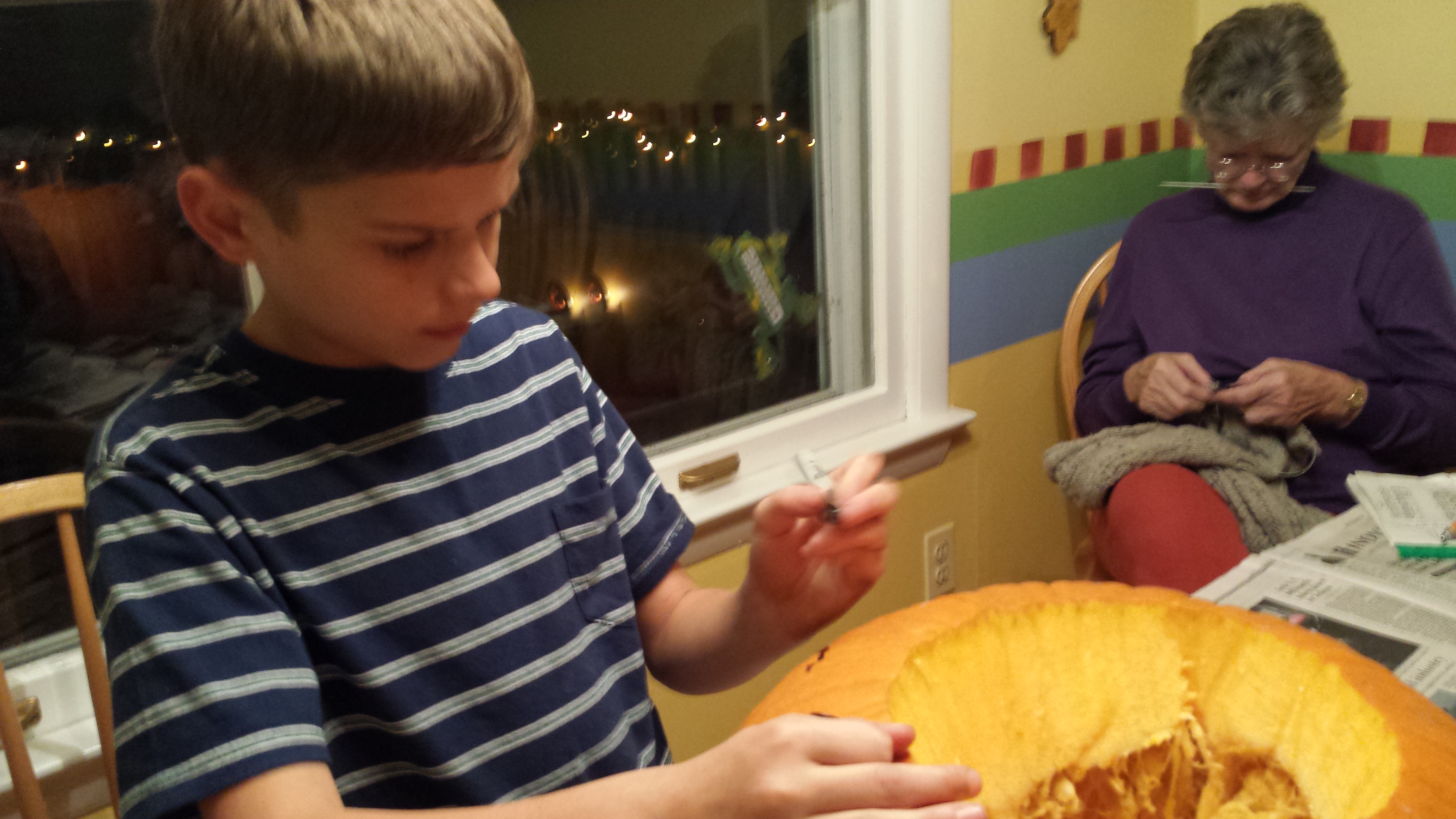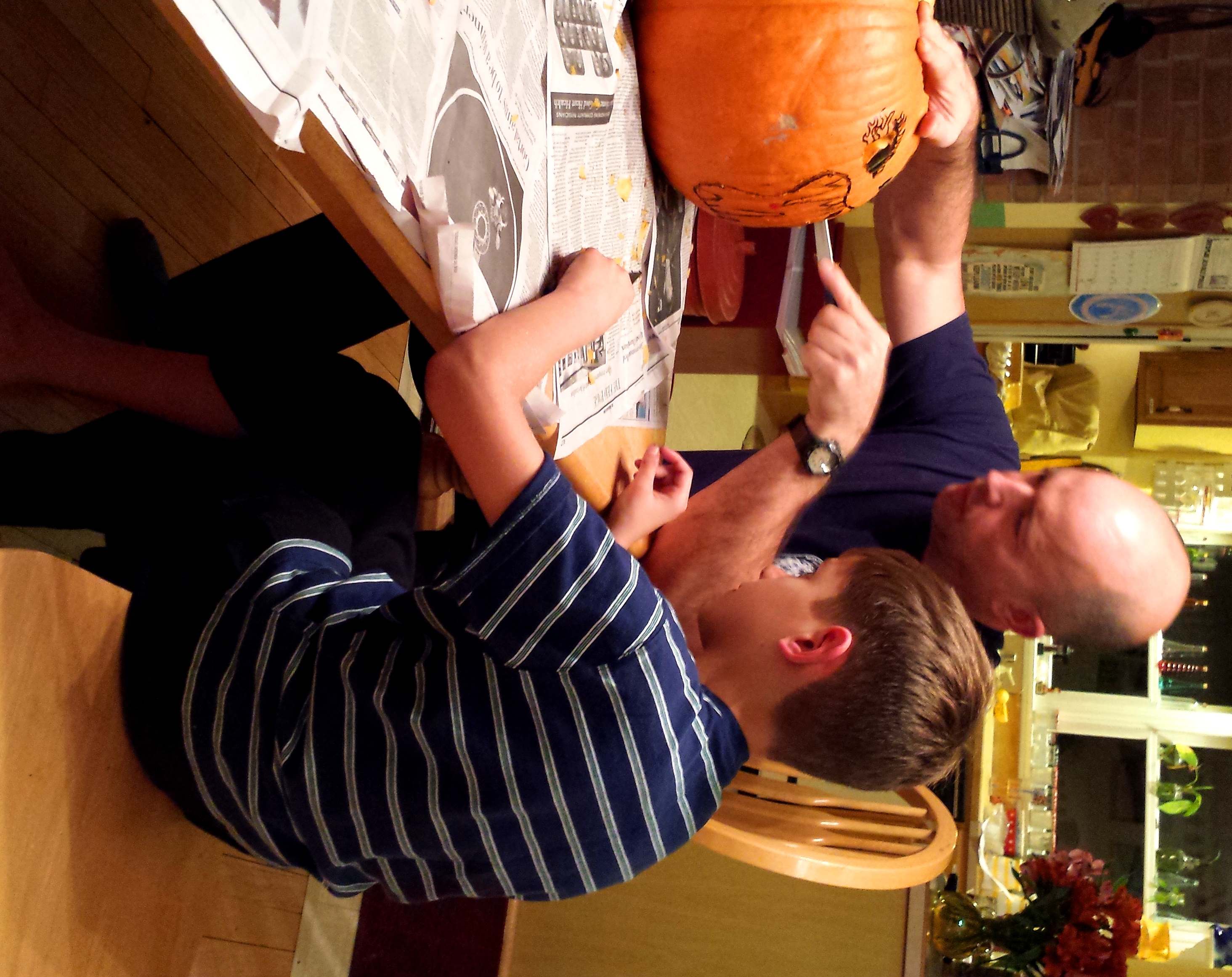 Apparently, ‘Perseverance’ was his strategy. For two full hours, and very little help from My Captain, he kept at it. Inch by inch he made his Jack-O-Lantern into EXACTLY what he had envisioned.