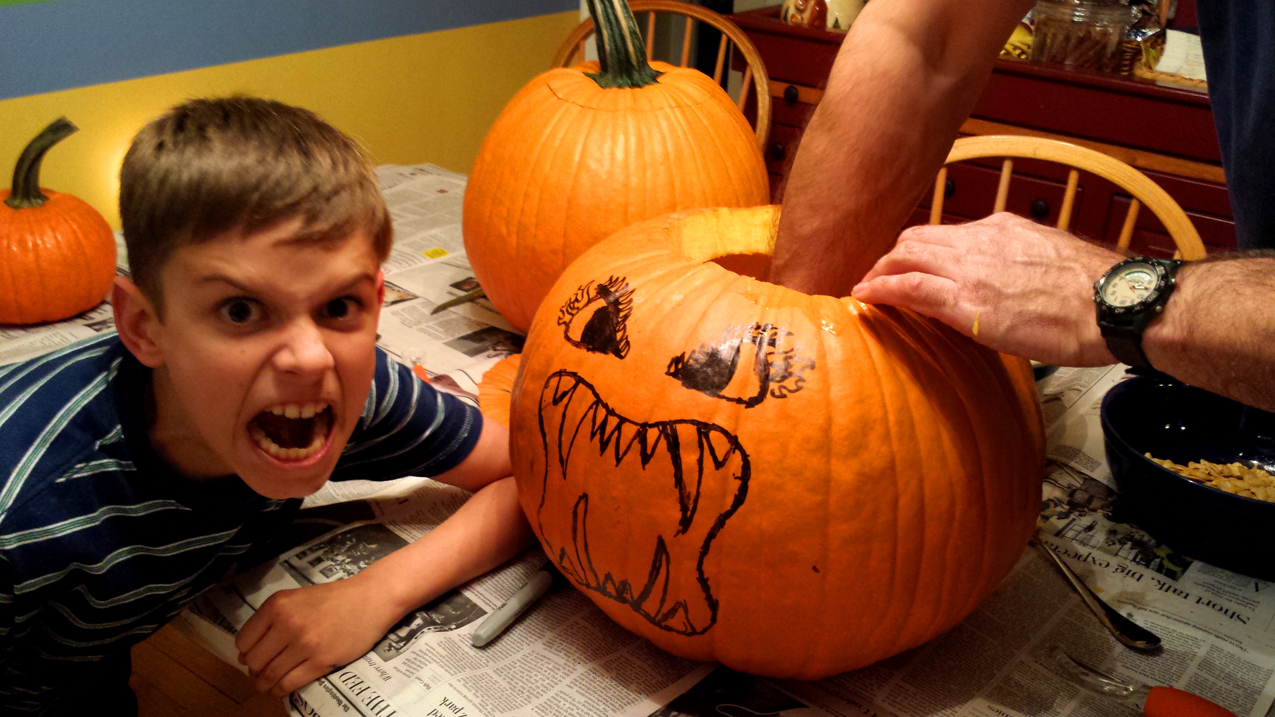 I begged My Captain to keep Critter’s expectations in check when the carving came. I encouraged him to mitigate the disappointment. I feared the tears to come. Why couldn’t we have just stuck with the ol’ triangle eyes and nose?