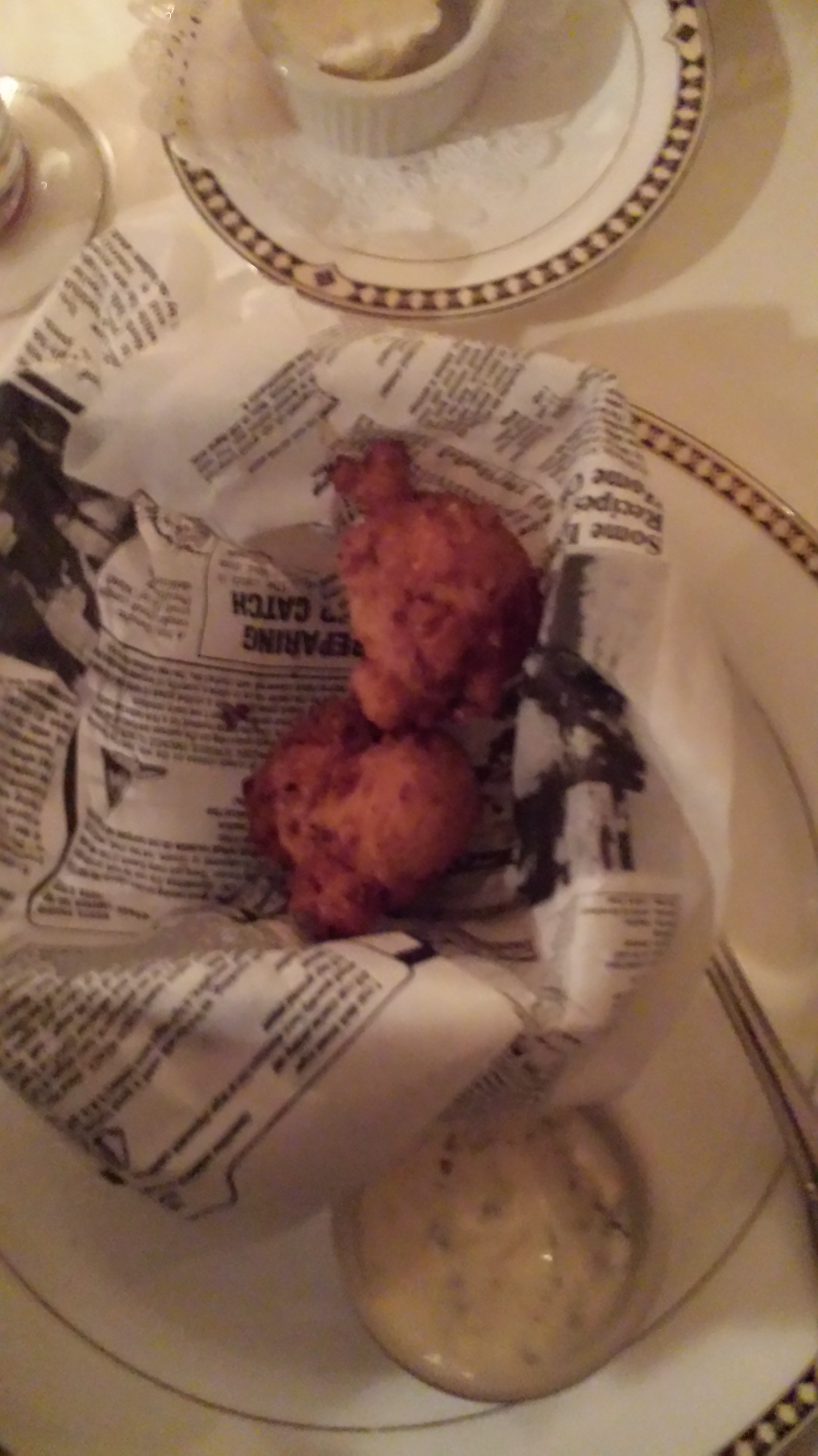 or the fantastic hushpuppies (we didn’t take the picture fast enough…My Captain had already eaten half of them!),