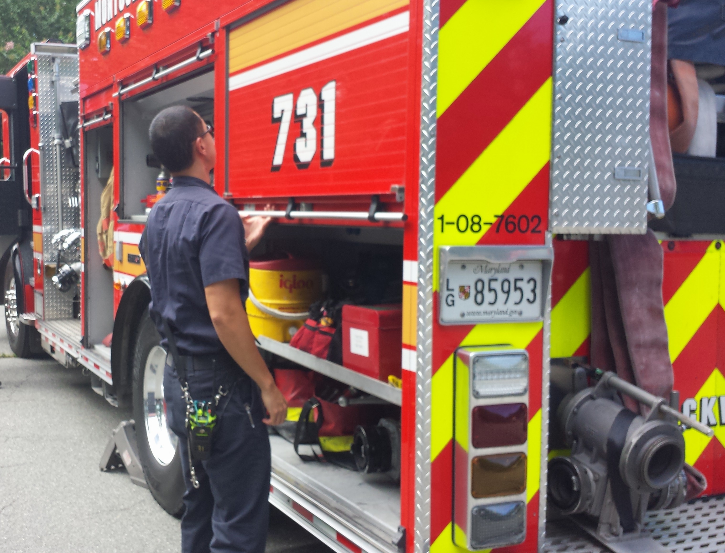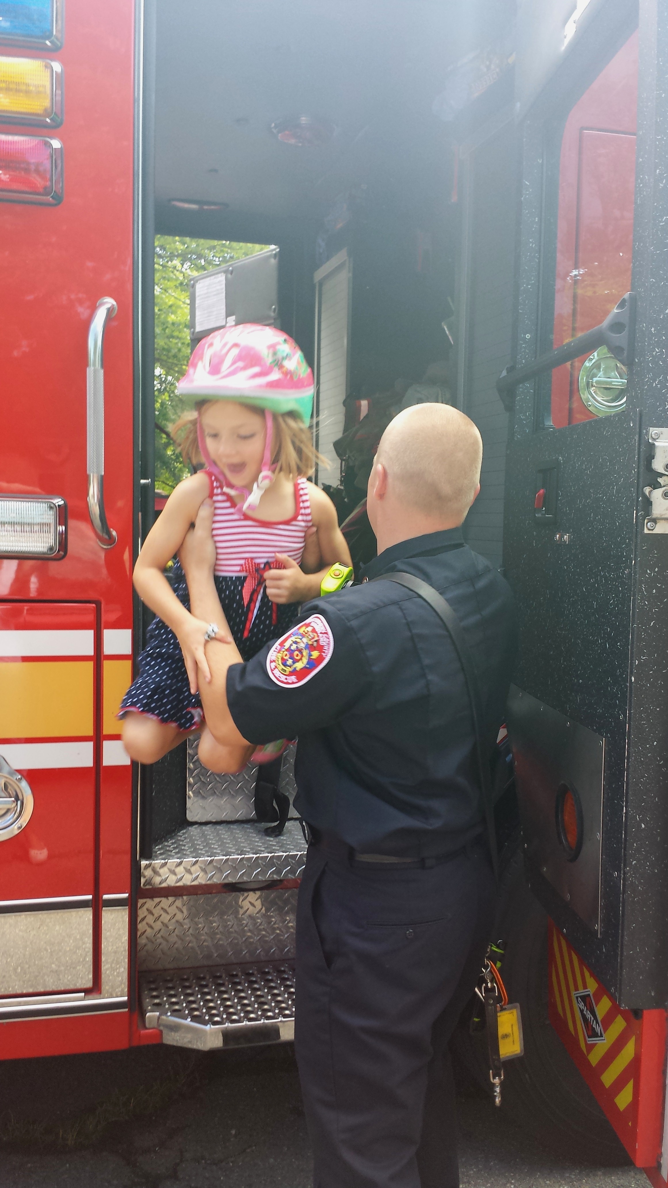 When we got there, Master Firefighter Mike (one of My Captain’s favorite drivers) hopped out and yanked open all of the compartments for the town’s folk to check out,