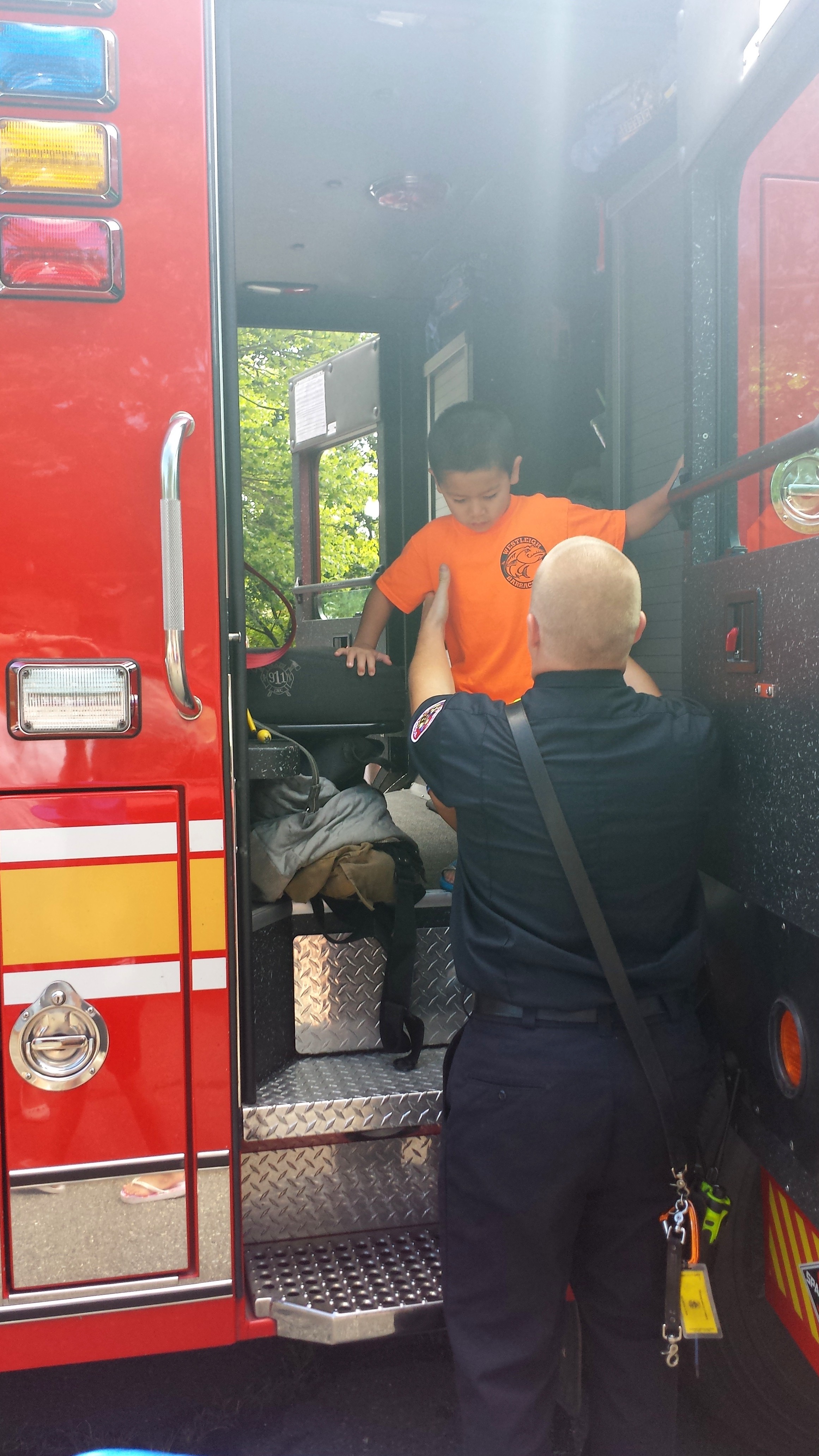 My Captain…. (actually here he isn’t shaking hands. Here he is reassuring the little one that he wouldn’t put the loud, scary sirens on).