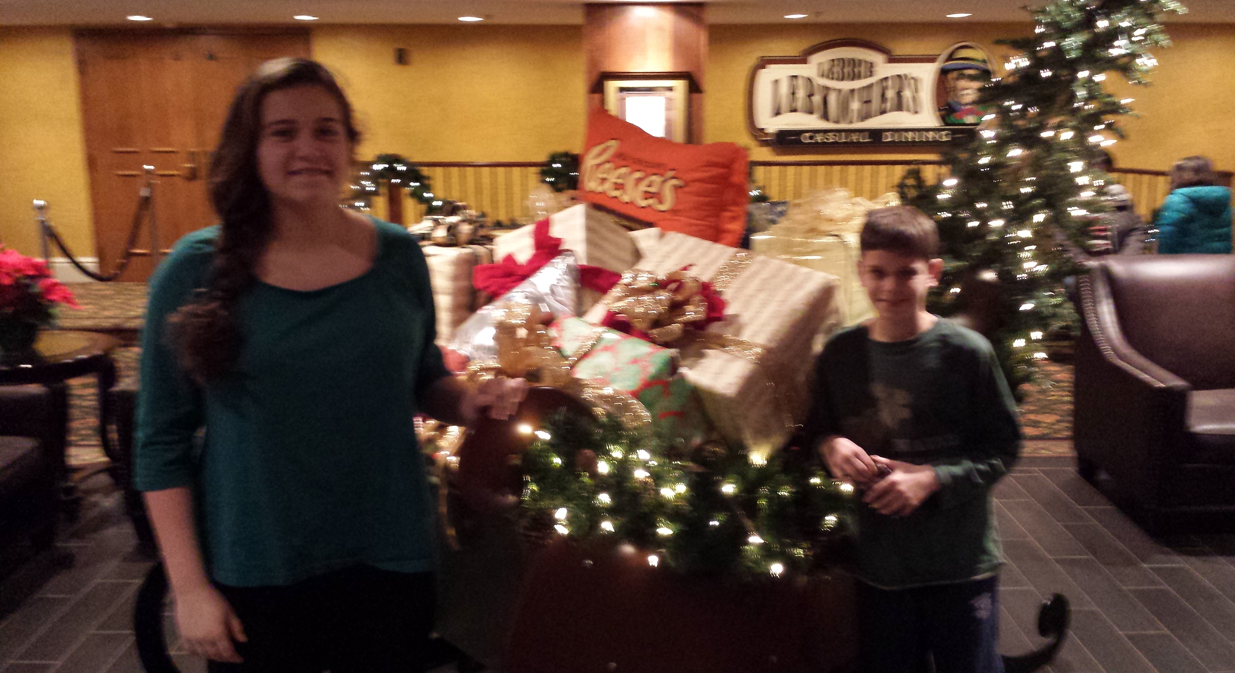 Note the patient look of Varmint and Critter as I asked them to stop for the yearly picture by the Hershey Lodge Sleigh. Dammit, kids, can you put your arms around each other, or touch, or something? At least look like you have a LITTLE affection for one another?