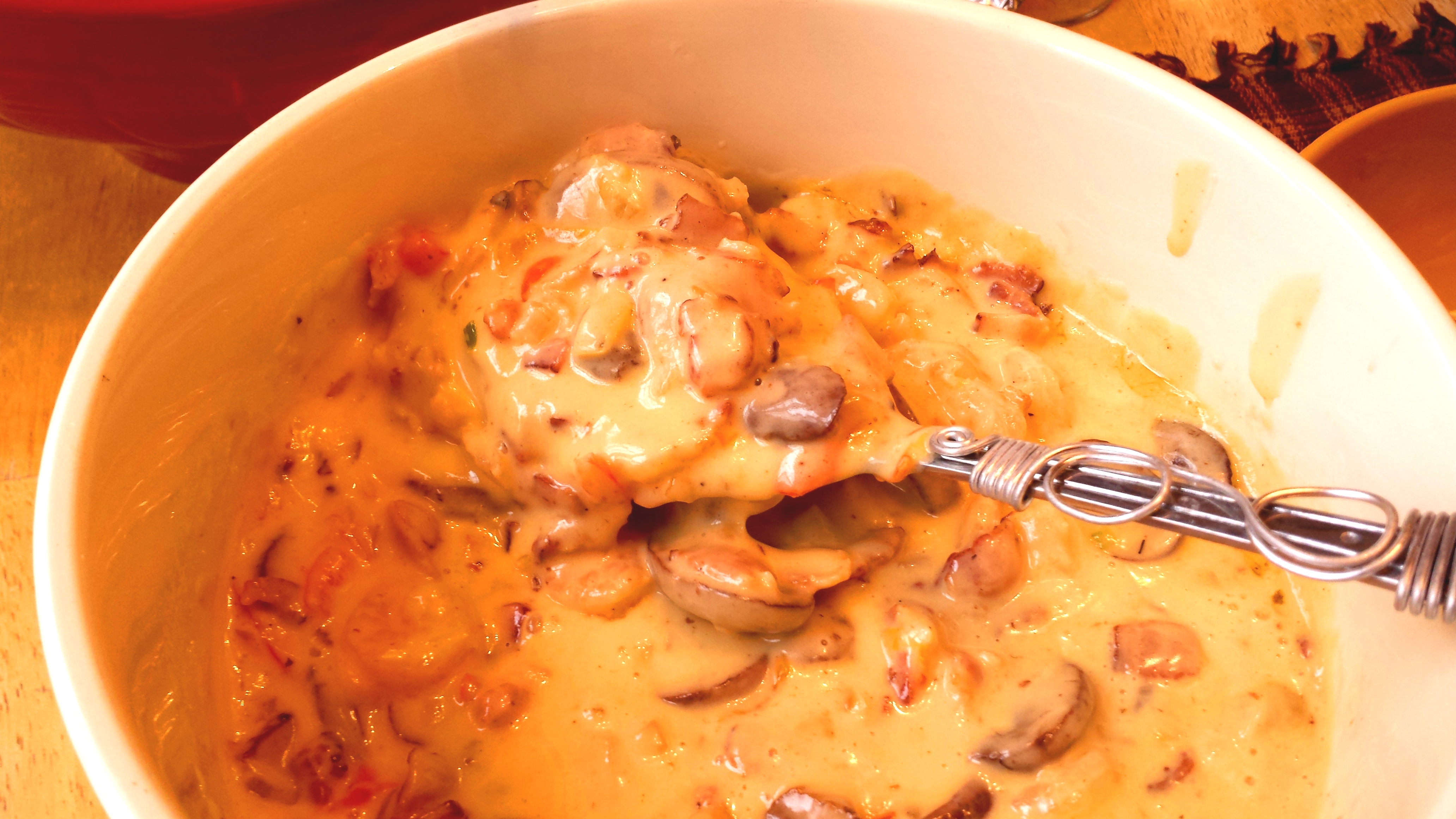 As the Portobellos get nice and golden (don’t stir too soon or too often! Let ‘em get crispy on one side first.) grab your chopped mess and throw it all in there. When all of that deliciousness is tender, pour in a mess of wine and a mess of cream. Send up a prayer to our Lord and Savior, thanking him for these things, for they will surely make us see him sooner because of the quantities in which we consume them.