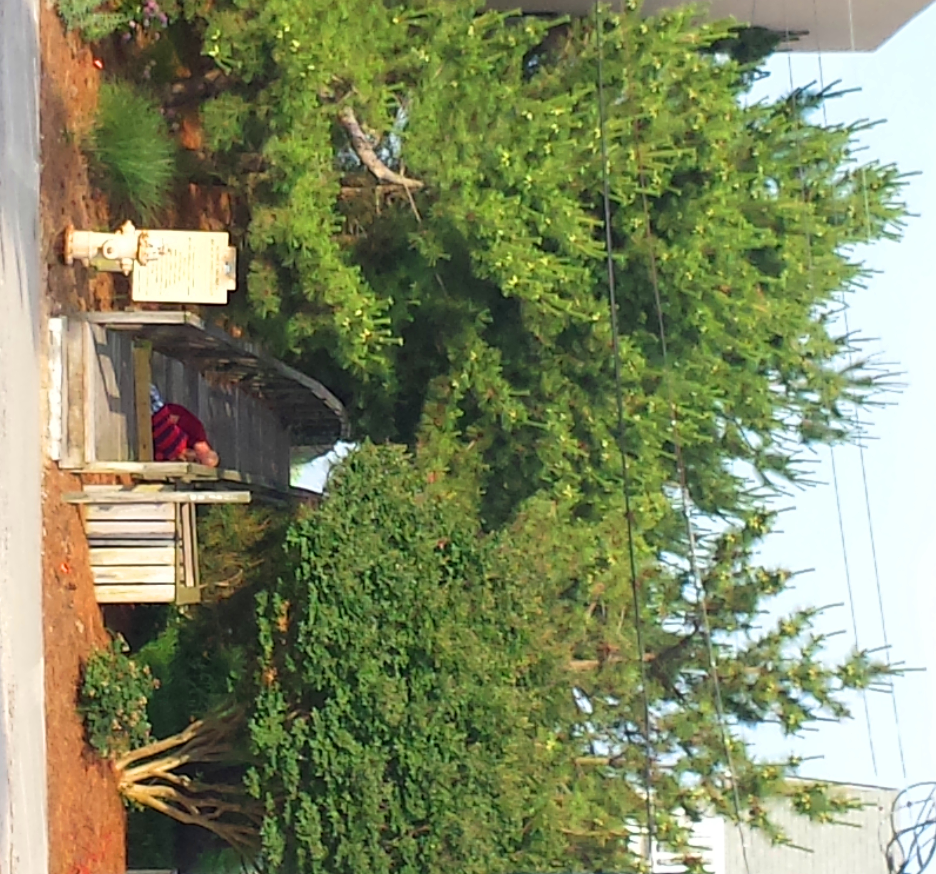 Its sole purpose is to provide a place for beach chairs and umbrellas to rest beside the garage.