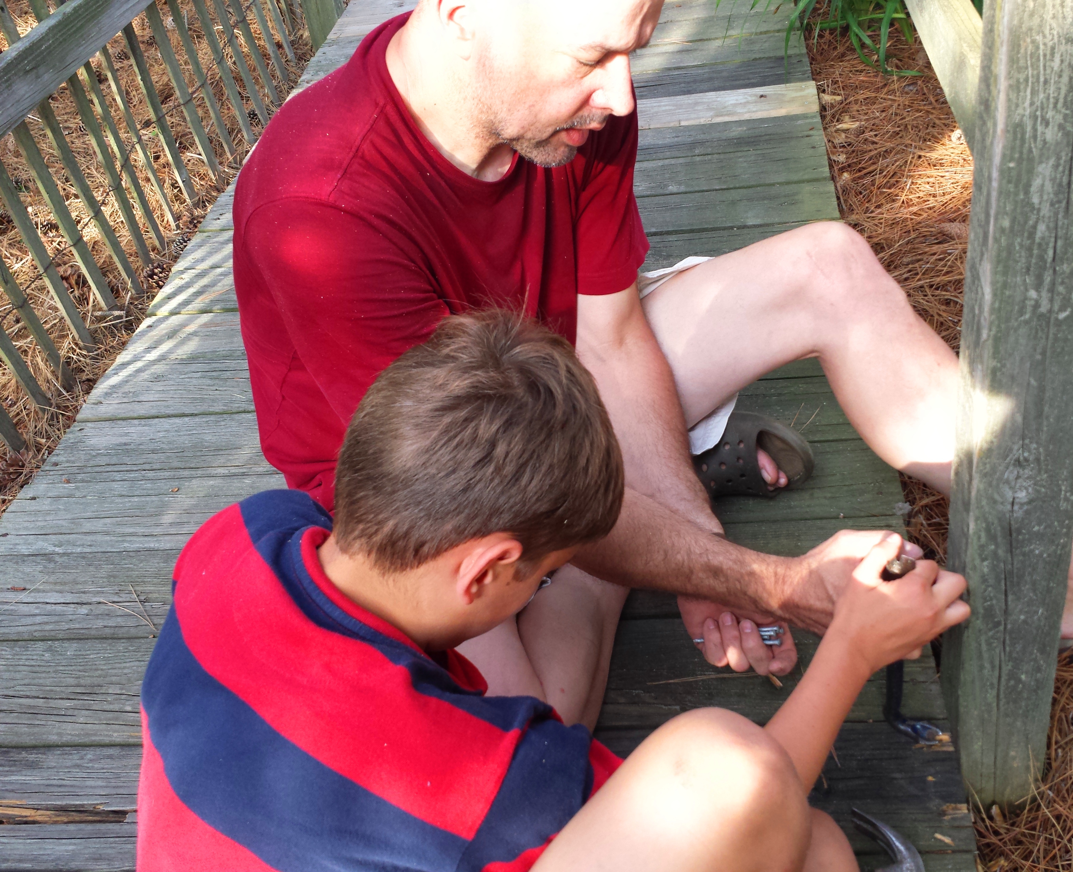 And My Captain is doing one heck of a quality job on it as he builds it. I mean, this thing will be able to withstand Category Five hurricanes…those cheap beach chairs and broken umbrellas will be SAFE, I tell you! He rocks at stability, my man.