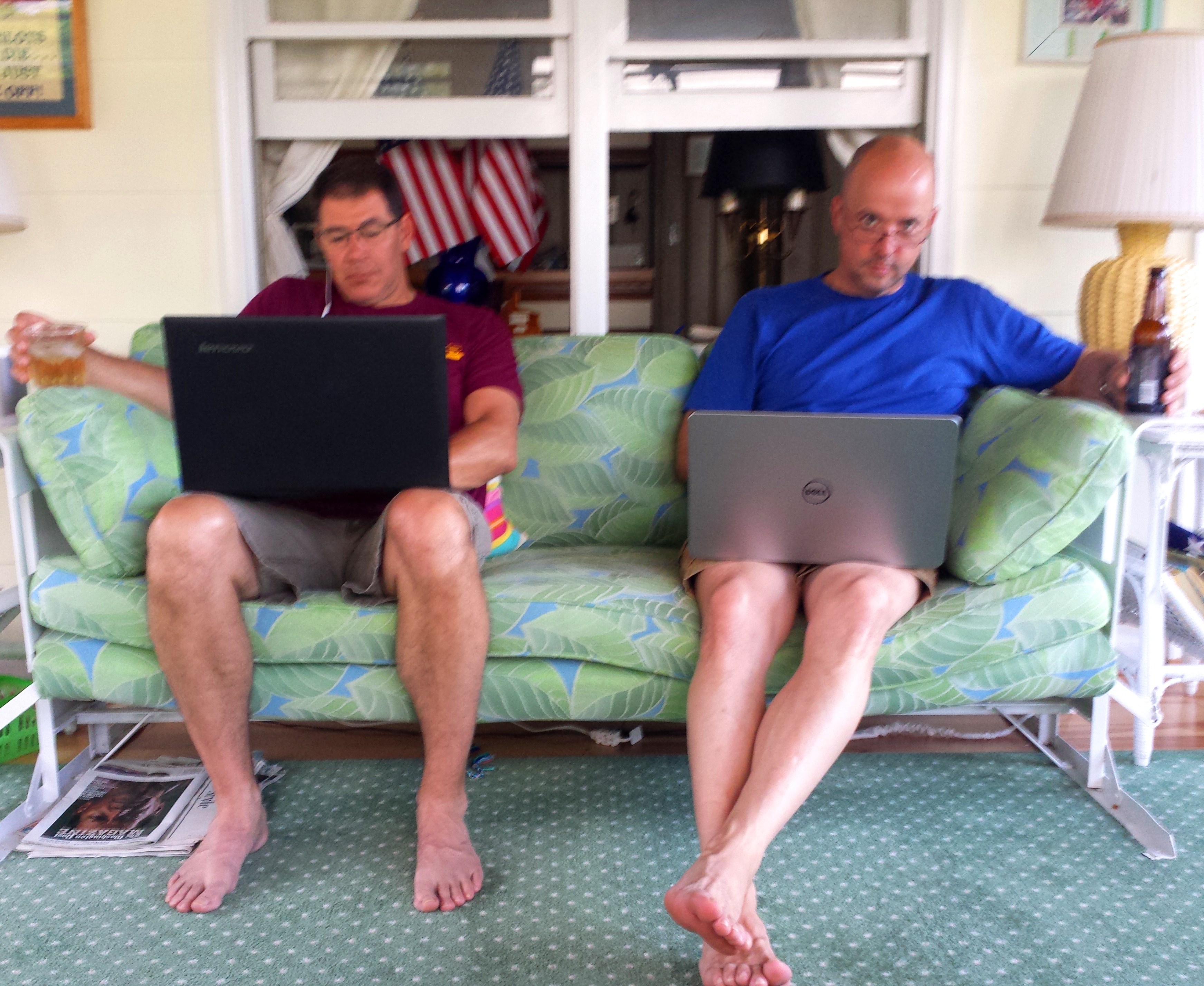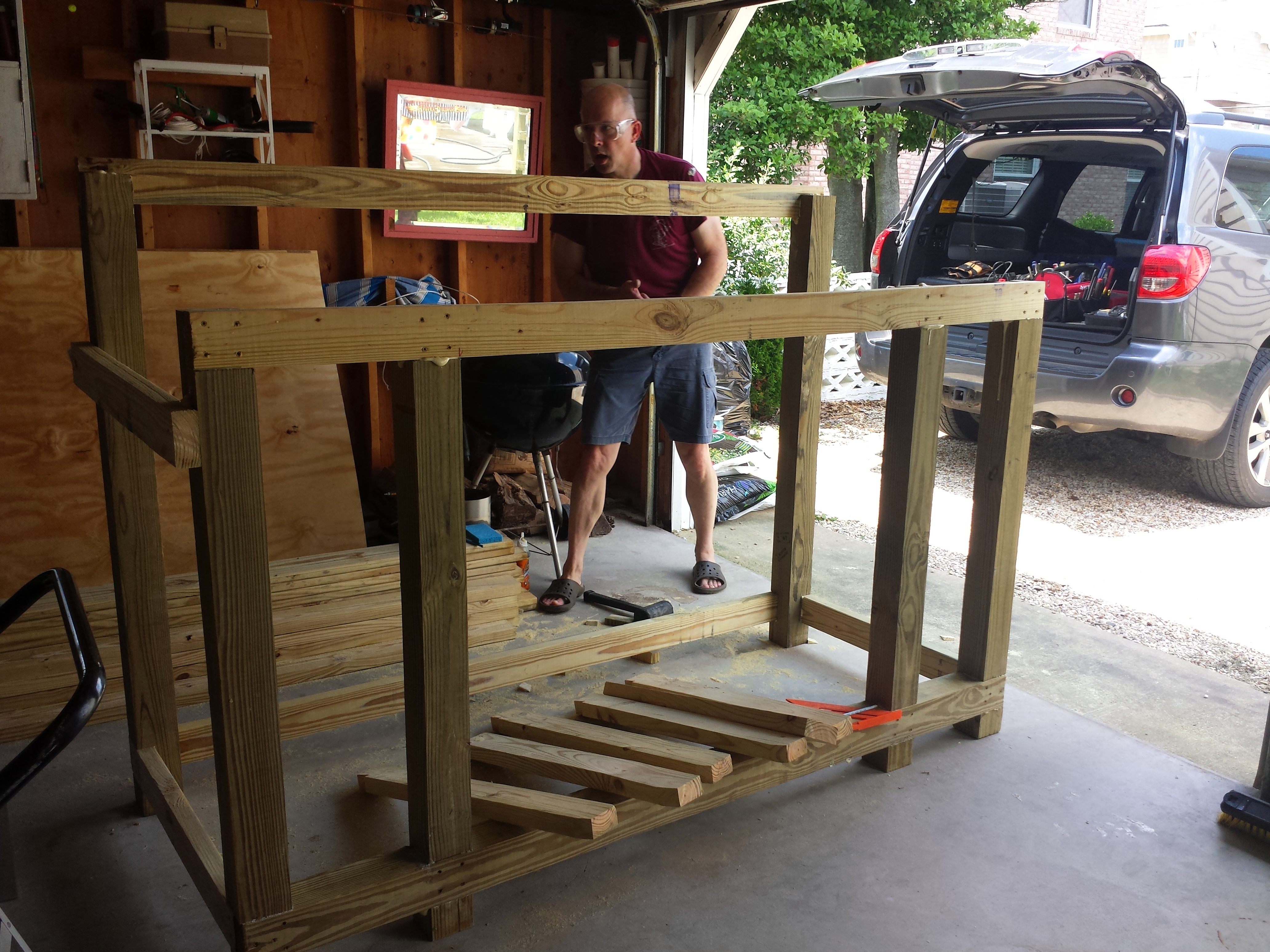My Captain and his best friend, Ty, are working on building a beach chair shed that My Captain designed for renters of Pop-Pop’s beach cottage to use. So he’s spending a good portion of his vacation, well, working on it. But that is the way My Captain rolls. He’s got to be busy. He’s got to be doing. Making a difference. Sweating. That’s just who I married.