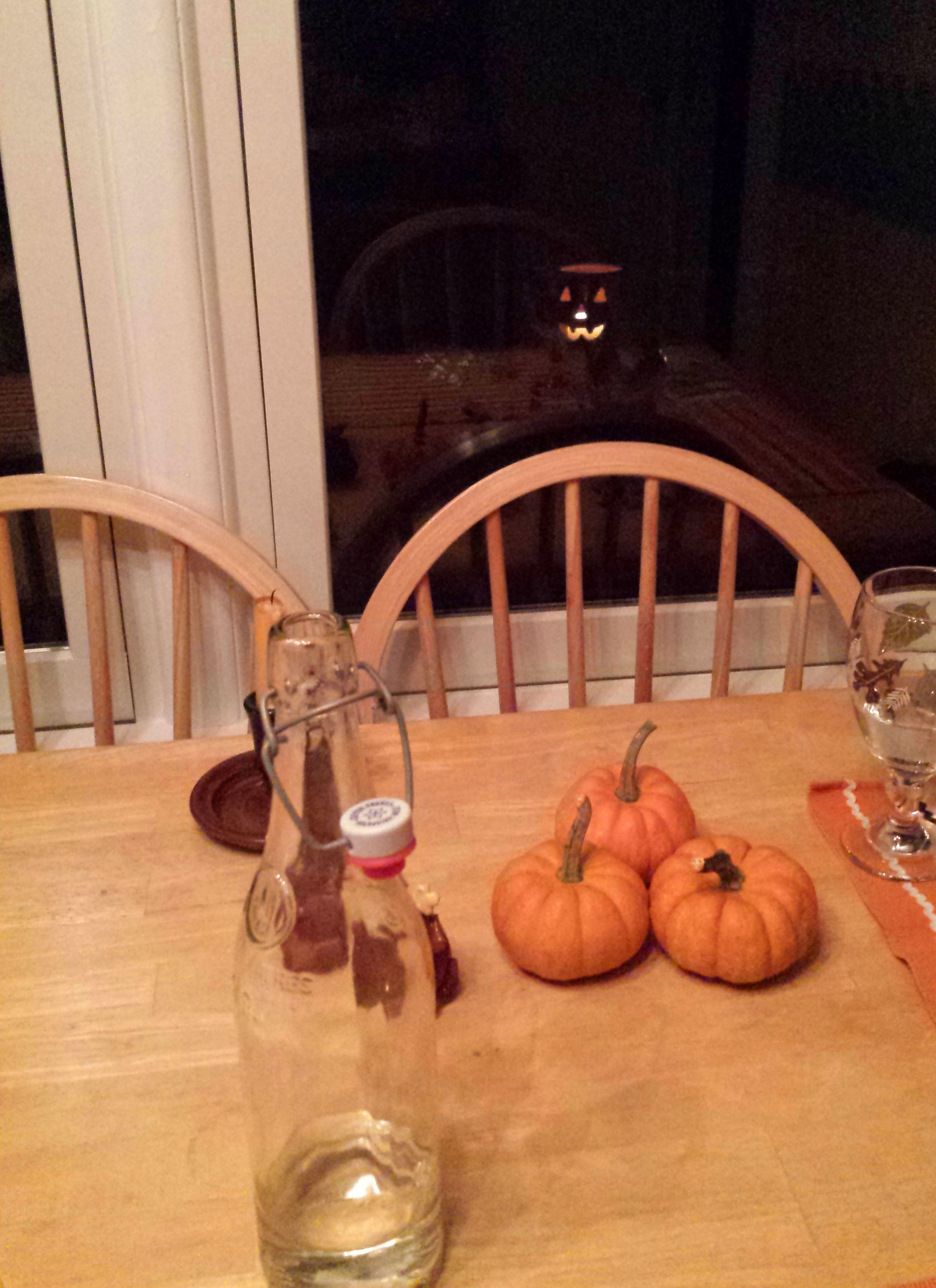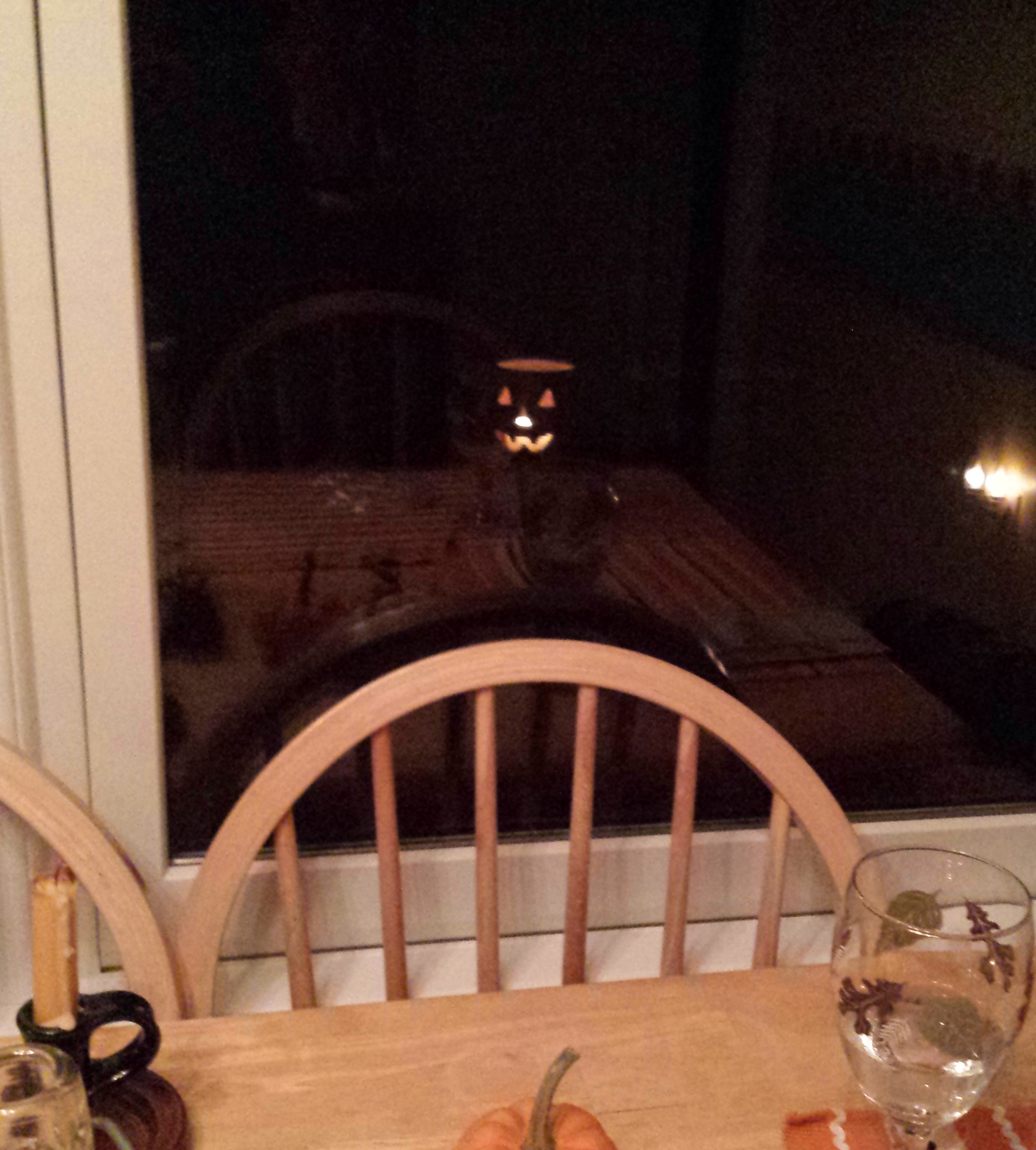 and lighting Jack, our ceramic Jack-0-lantern up outside with a fresh candle every night to see during dinner,