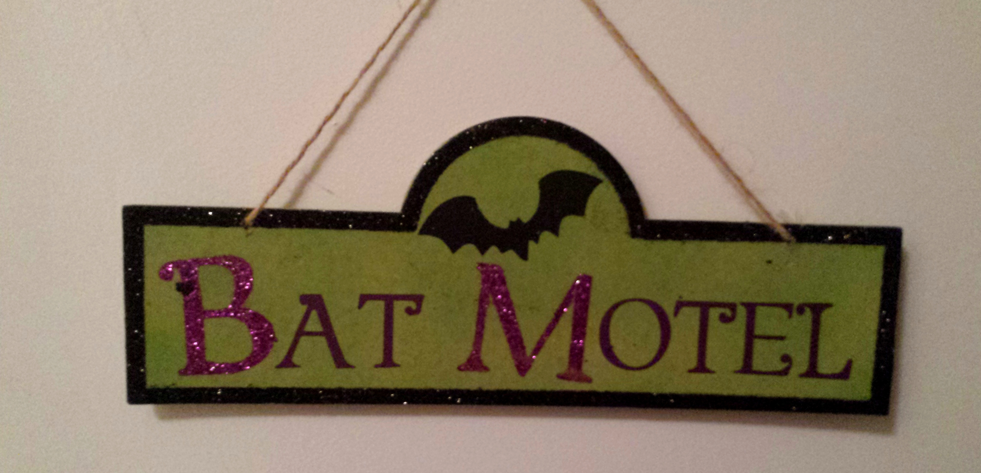 …and replacing the ‘Outhouse’ sign on the bathroom door with ‘Bat Motel’….