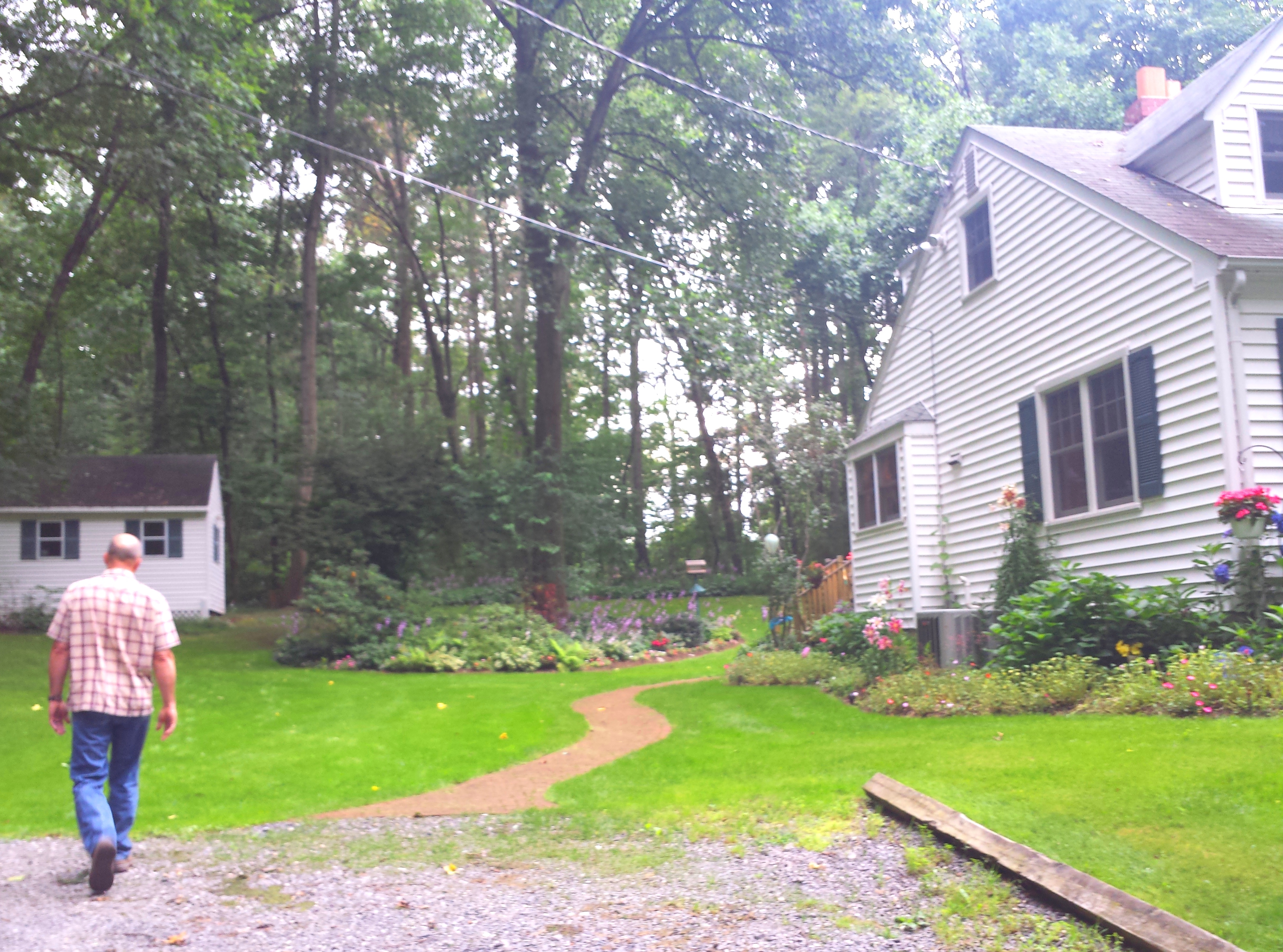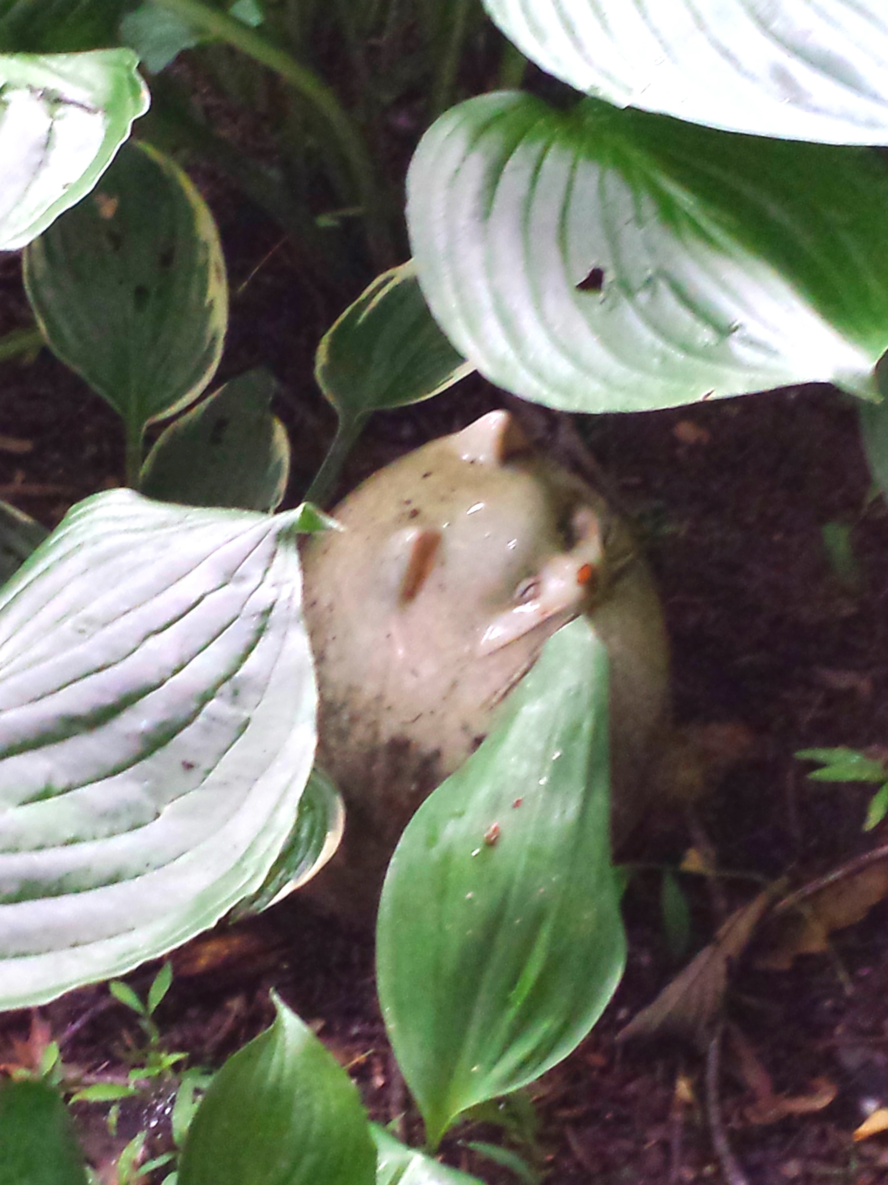 Aha!  Cookie’s gravestone is in the Hosta Garden out back.