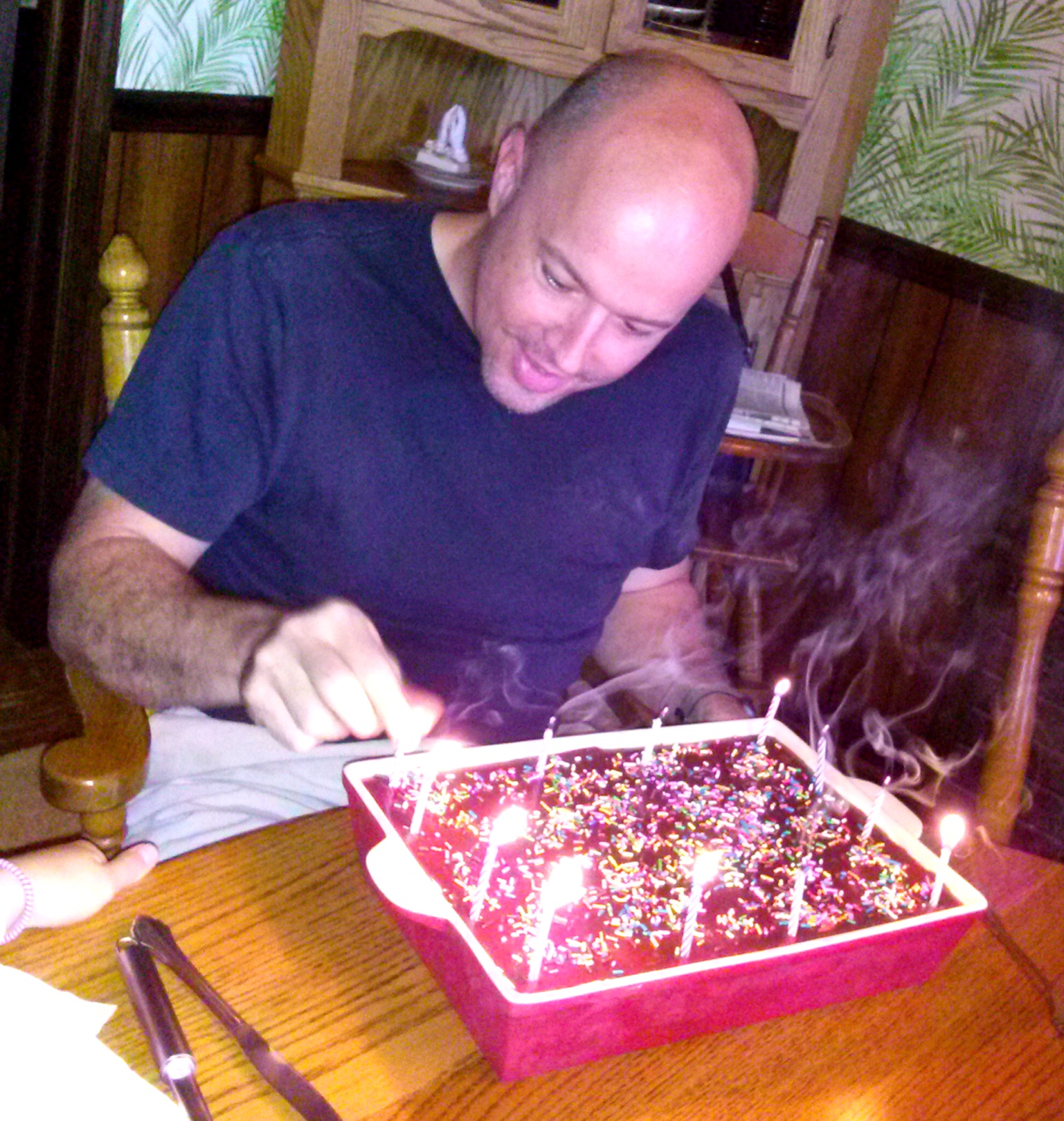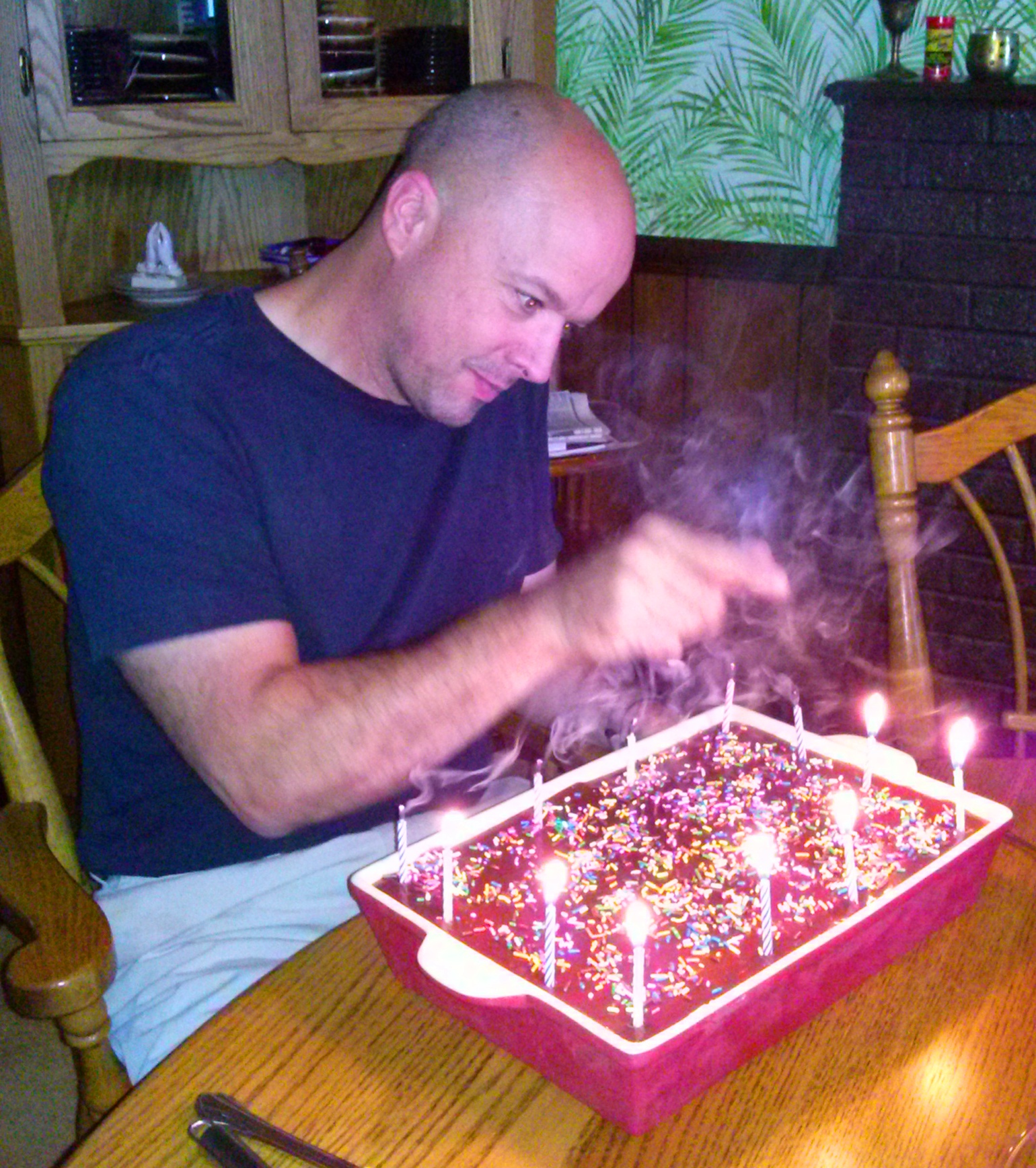 20 minutes later, he re-joined me at the kitchen table, long enough to snarf down the food, and wipe his mouth, when the alarm tones sounded, and he ran off to a high-rise fire without so much as a look back.